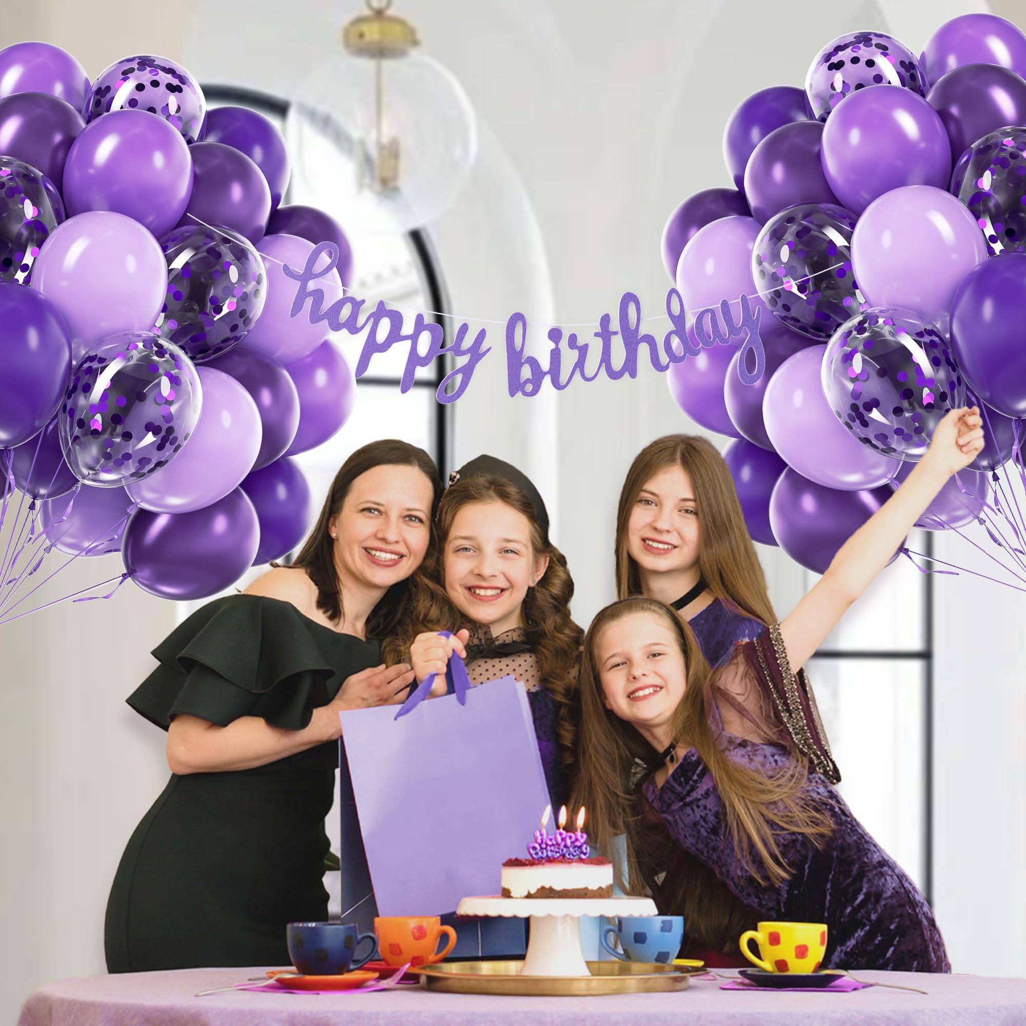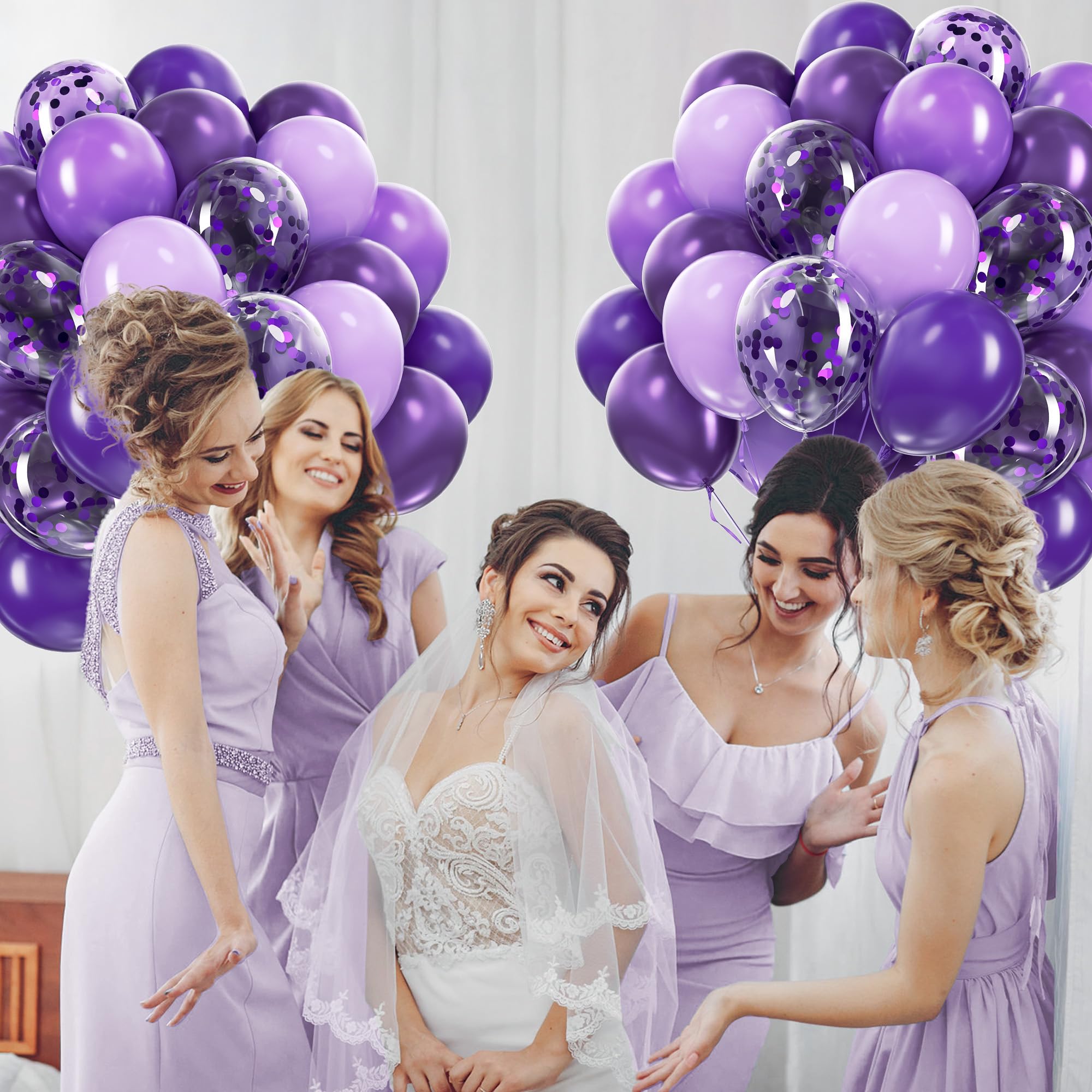 Package Include: The purple balloons includes 12inch purple balloonsx15, 12inch dark purple balloonsx15, 12inch metallic purple balloonsx10, 12inch lavender purple balloonsx10, 12inch purple confetti balloonsx10, glue dotsx20, purple ribbonx1
