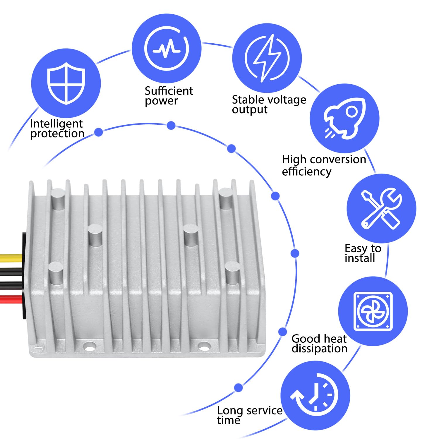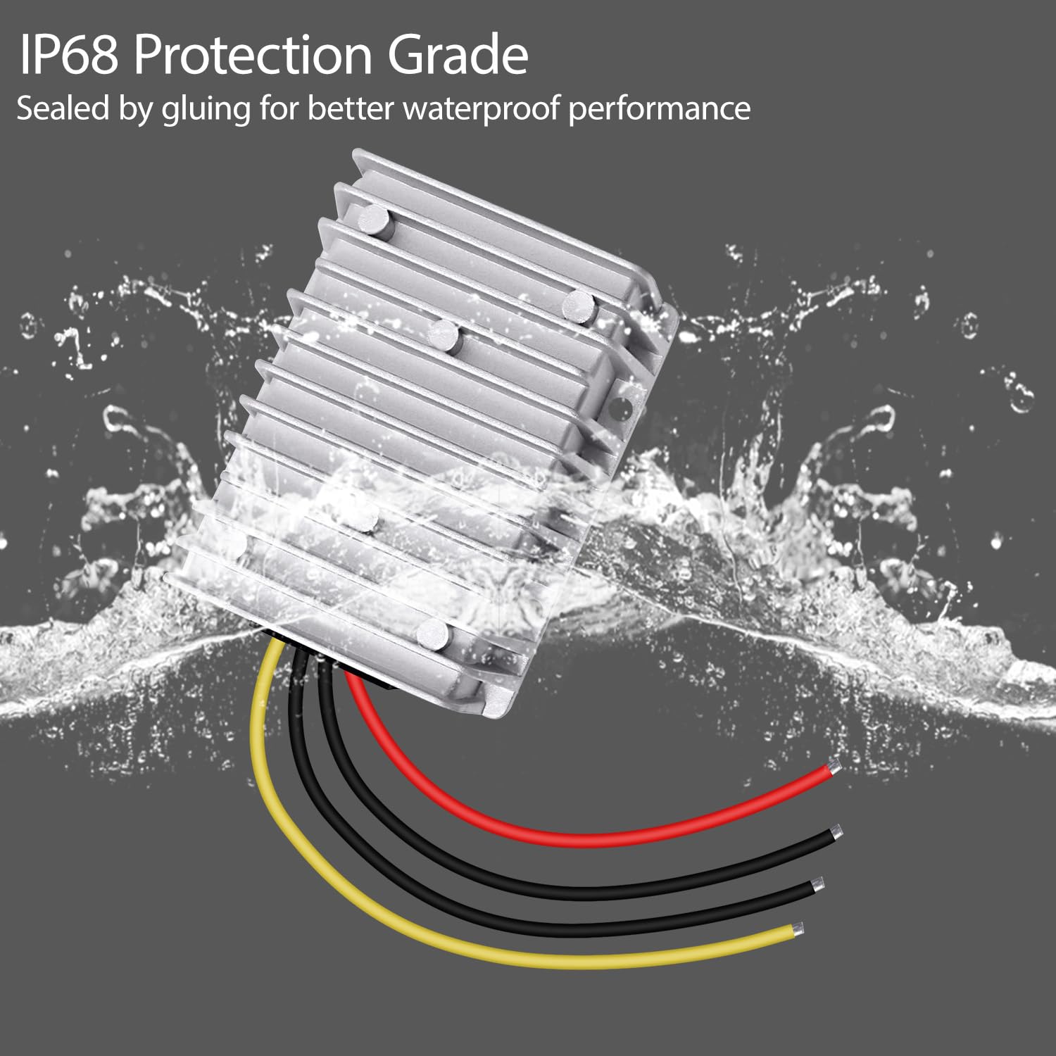 [ Compact and Waterproof ] Voltage reducer has good heat dissipation with aluminum shell and silicone sealed. IP68 waterproof and dustproof which is durable for long service time.