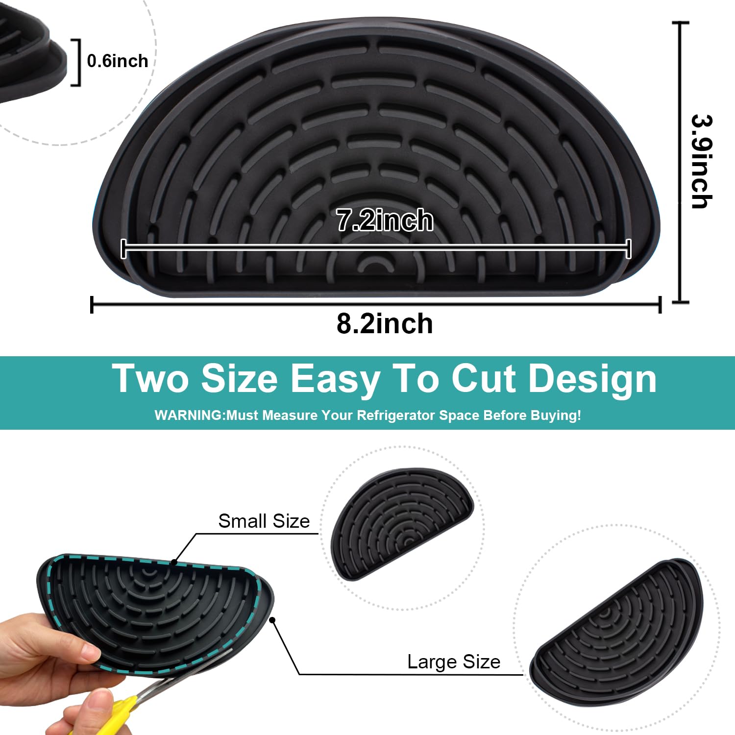 【Suitable for Most Refrigerators】Our refrigerator drip tray has two shapes, semicircular and rectangular.Semi-circular size: 8.2*3.9*0.6in, Dimensions after cutting:7.2*3.9*0.6in. If the size doesn't fit, you can cut the tray to fit your refrigerator. Our drip tray is suitable for most refrigerators.like GE GSS25GYPFS