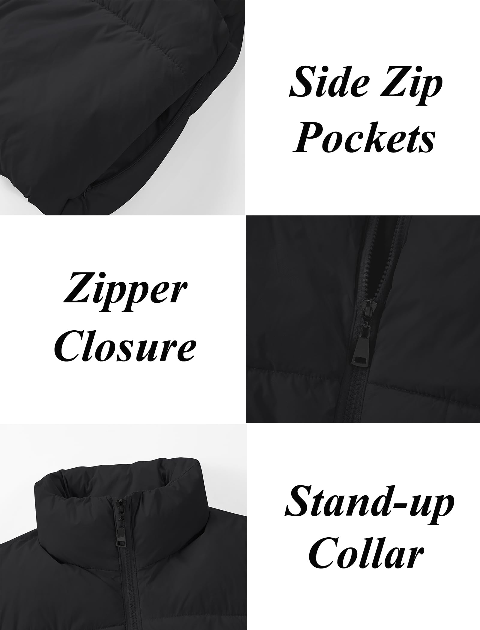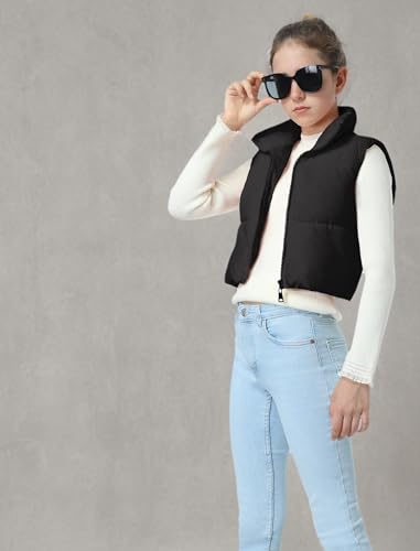 Puffer and Warm: The cropped vest has a sleeveless bodice with a smooth zipper. The stand collar traps heat and block cold to keep your neck warm. Two zipper pockets offer a cozy spot for your hands