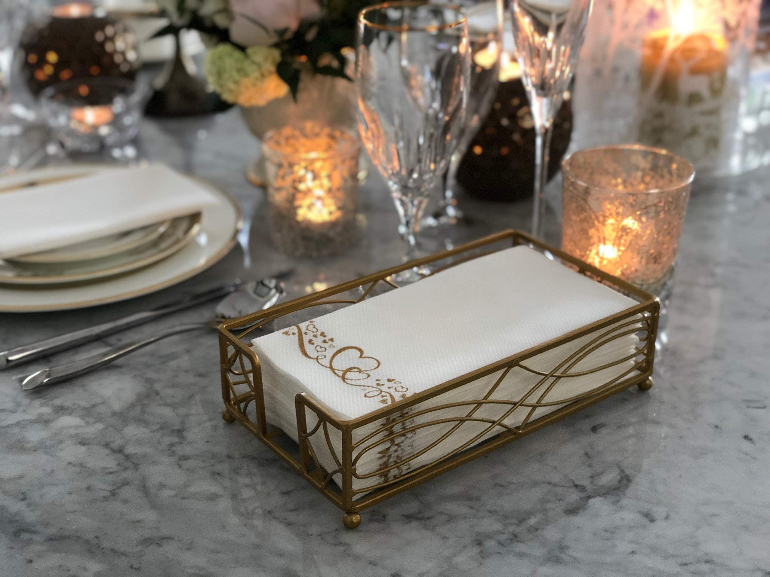 STYLISH & CONVENIENT: Fits about 15 napkins of our beautiful Chez Juju linen-feel paper napkins towels (available separately), or neatly stores an ample supply of other standard rectangle guest banquet napkins, so you don’t have to fill it up as frequently. Keeps disposable paper napkins dry, handy and clean for family and guests.
