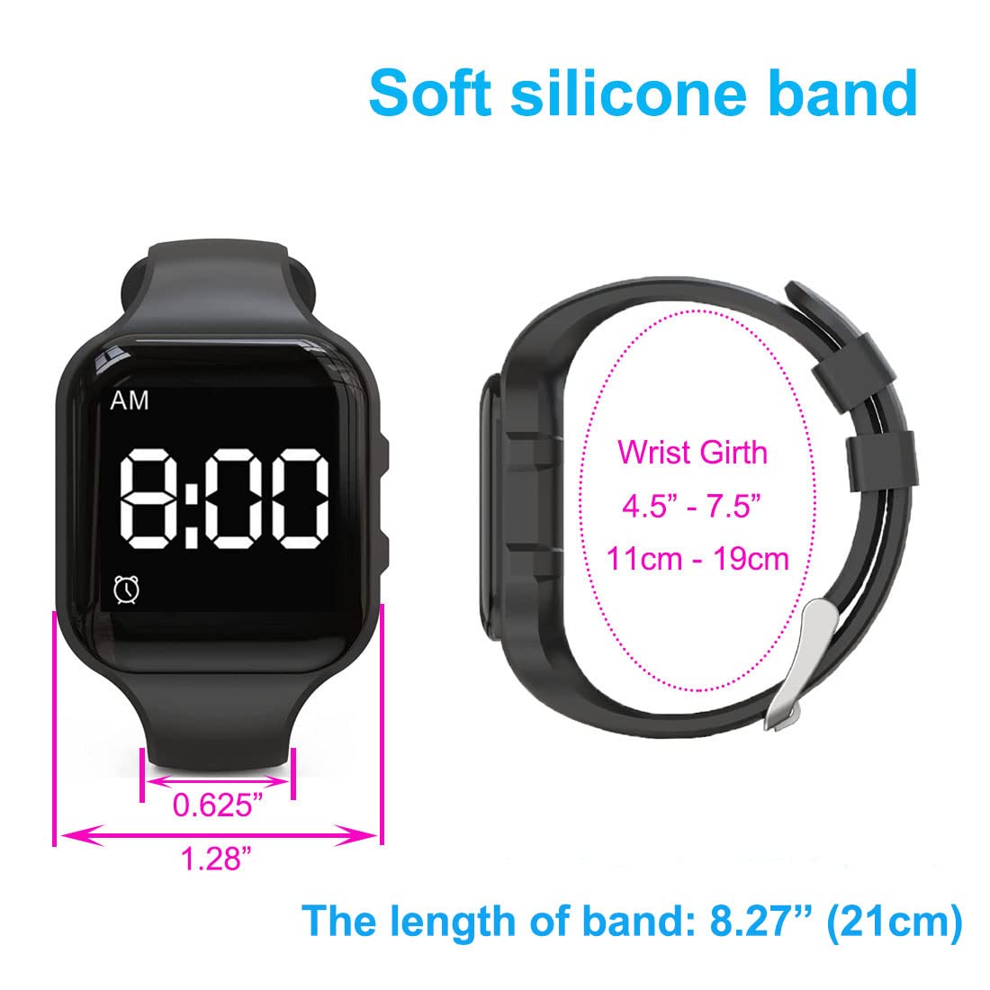 SAFETY TESTED - The improved vibrating watch is lightweight, made of soft silicone wristband, designed specifically to fits approx. 4” to 7.1” wrist.