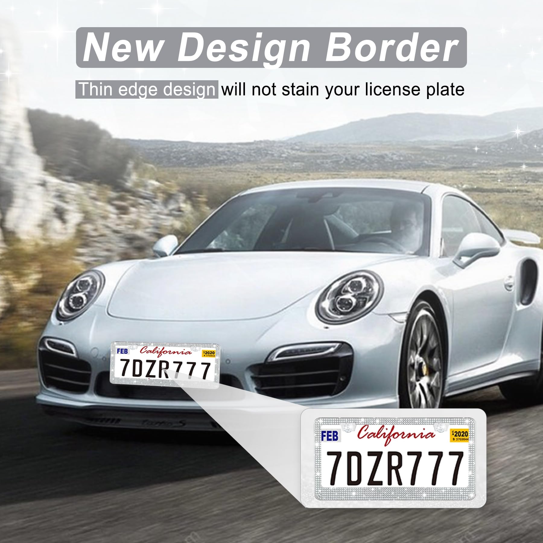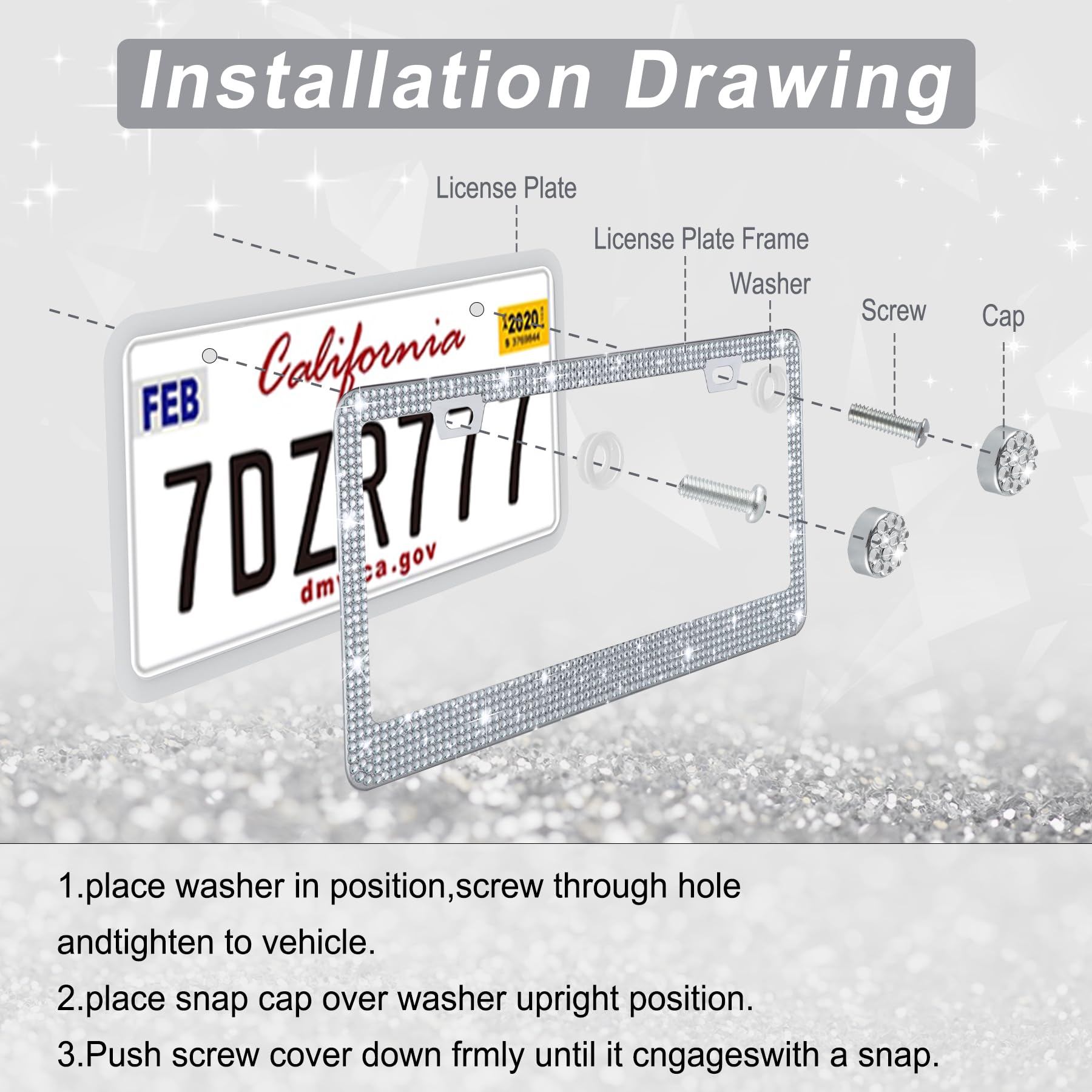 PREMIUM QUALITY: It is difficult to slip off after prolonged usage due to the stainless steel material, polygon-cut crystal rhinestones, wear-resistant, waterproof, and completely covered with exquisite handcrafted crystal. In addition, the expertly polished license plate frame won't harm your hands or your automobile.