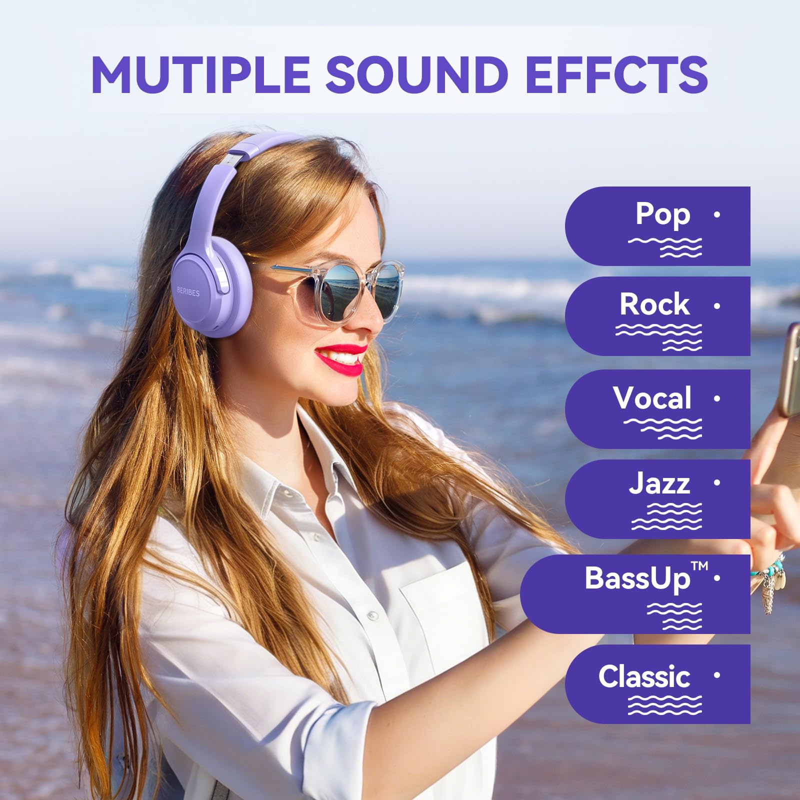 Optional 6 Music Modes: Adopted most advanced dual 40mm dynamic sound unit and 6 EQ modes, BERIBES updated headphones wireless bluetooth black were born for audiophiles. Simply switch the headphone between balanced sound, extra powerful bass and mid treble enhancement modes. No matter you prefer rock, Jazz, Rhythm & Blues or classic music, BERIBES has always been committed to providing our customers with good sound quality as the focal point of our engineering.