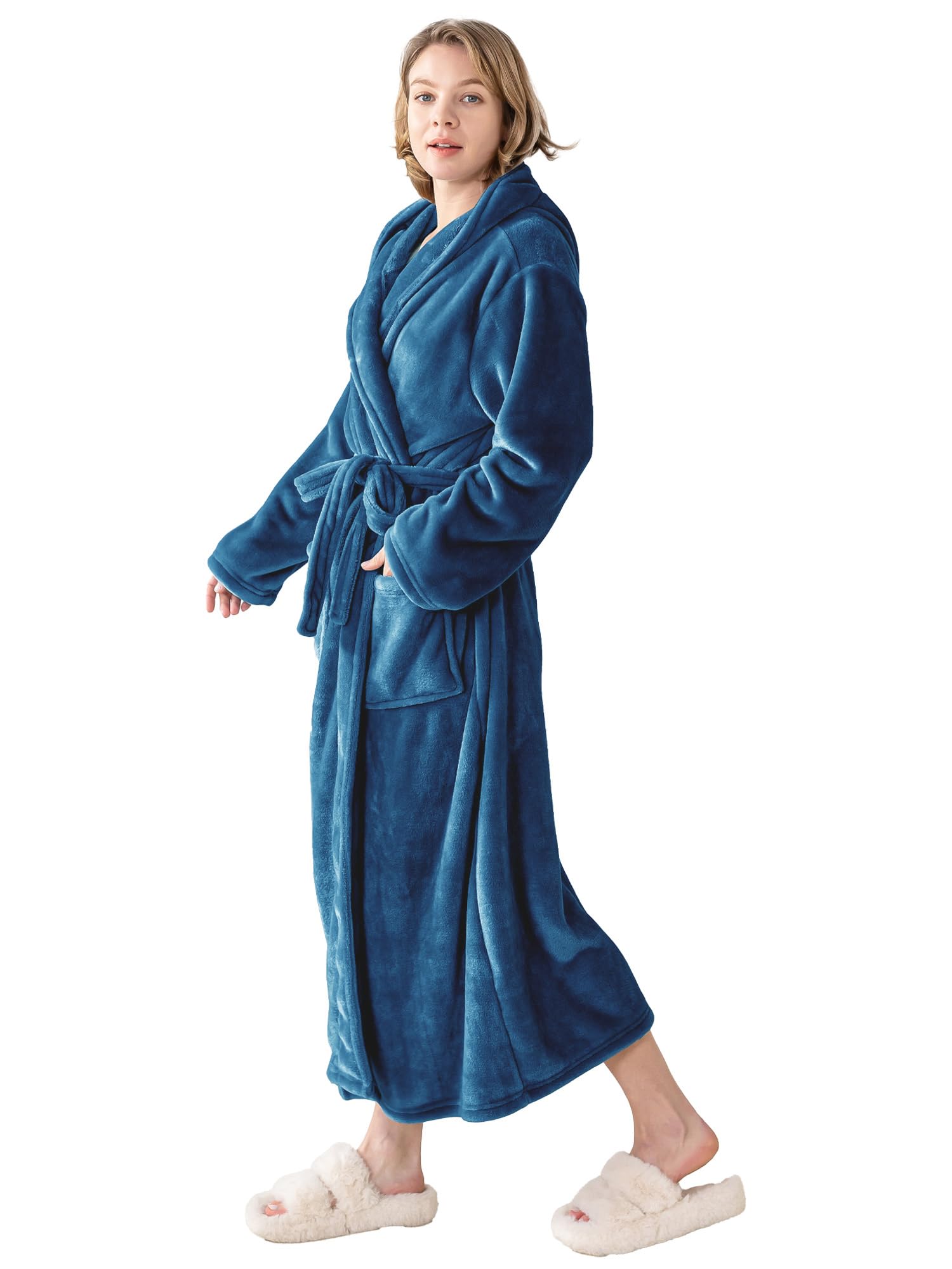 Elegant Full-Length Robes for Women (Ankle-Length Design):Designed with a graceful ankle-length silhouette, these women's plush robes provide full-body coverage without bulk. The breathable fabric keeps you cozy in winter and cool in summer, making them versatile robes for women for all seasons.