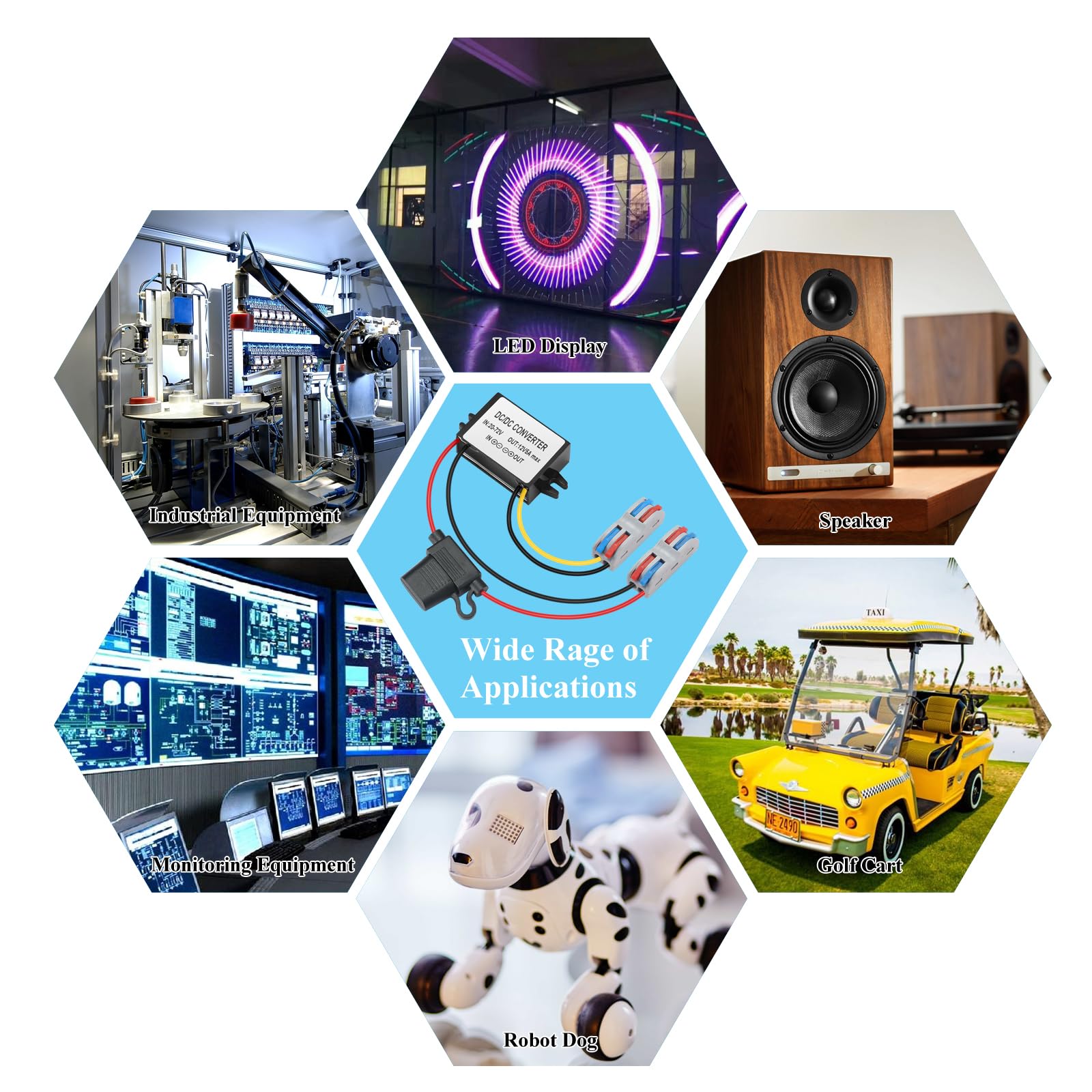 WIDE APPLICATION: A wide range of use, the excellent voltage reducer can be used for LED light strips, monitoring systems, golf carts, solar panels, speaker car headlights