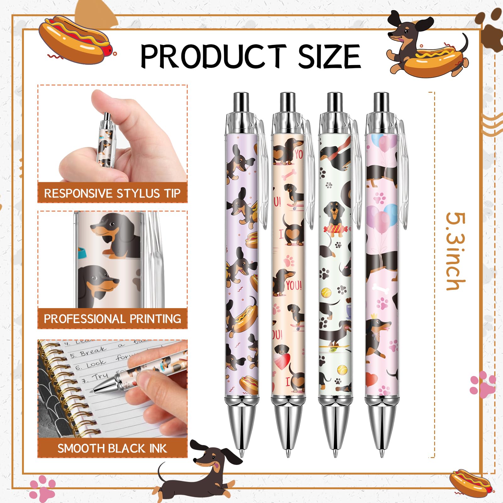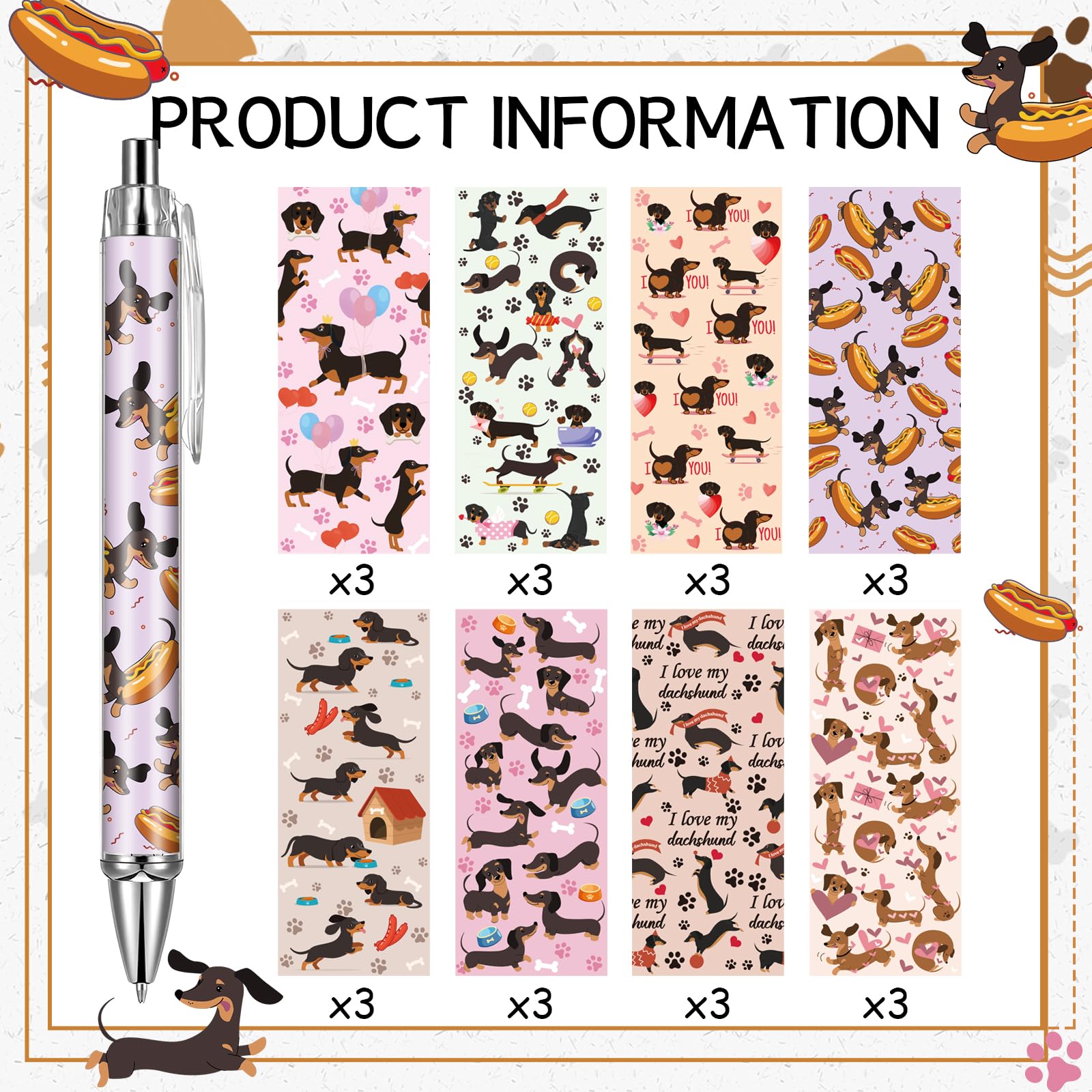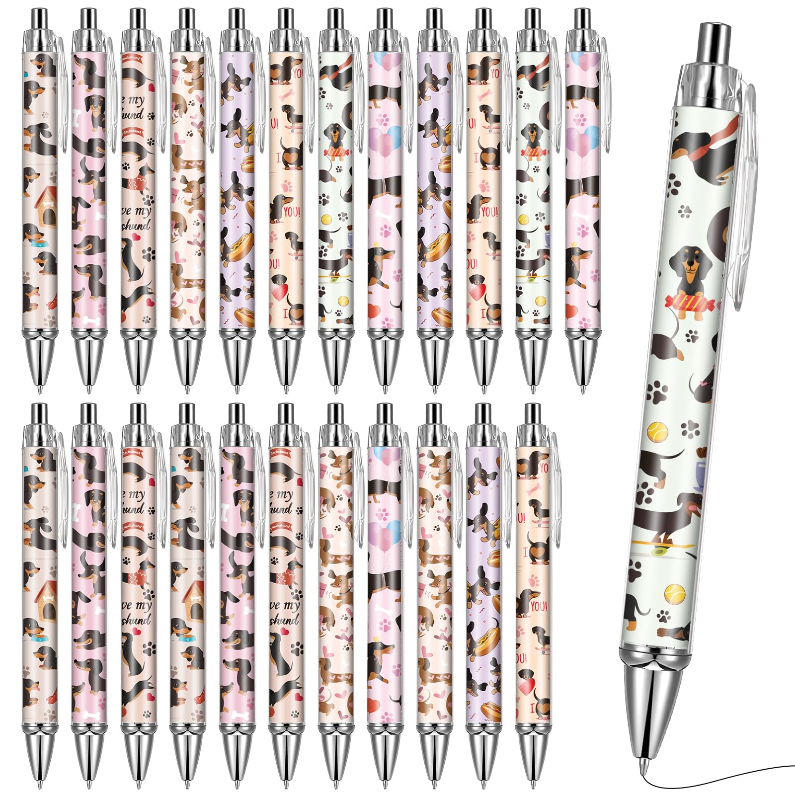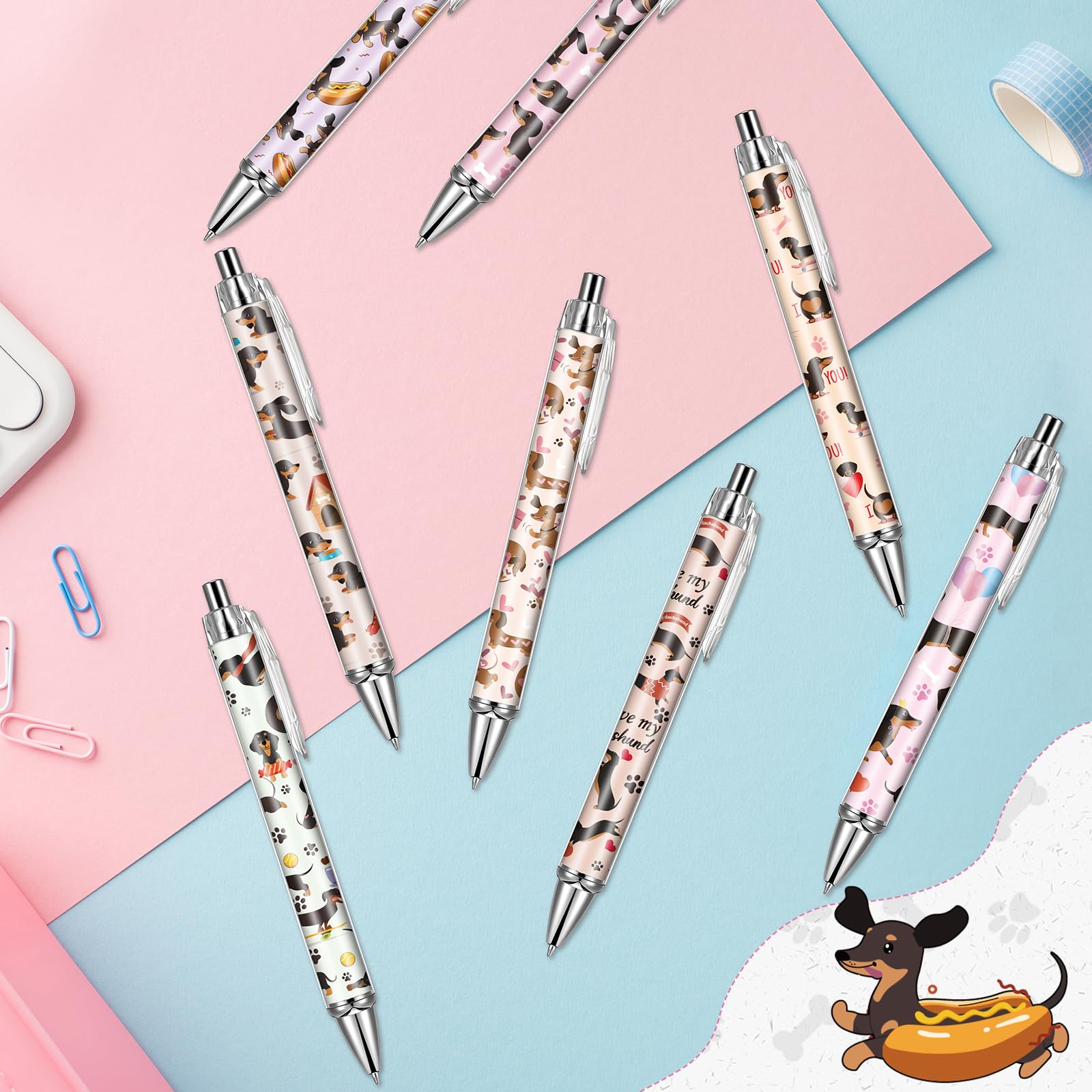 Variety of Styles: These ballpoint pens feature cute dachshund designs, with 8 different styles, 3 pens of each style, totaling 24 pens. They are perfect for meeting the diverse needs of consumers on various occasions