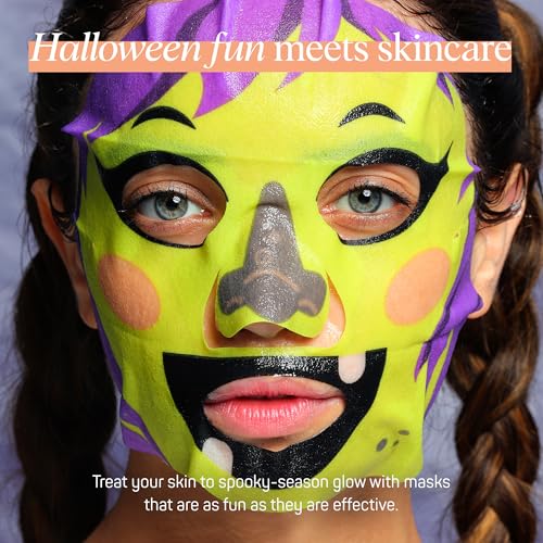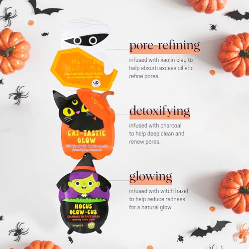 TRIPLE-FORMULA HALLOWEEN FACE MASKS FOR EVERY MOOD — Our mix of Mummy Makeover (pore-refining), Cat-Tastic Glow (detoxifying), and Hocus Glow-cus (brightening) lets you pick the perfect sheet mask before parties, selfies, or wind-downs all spooky season long.