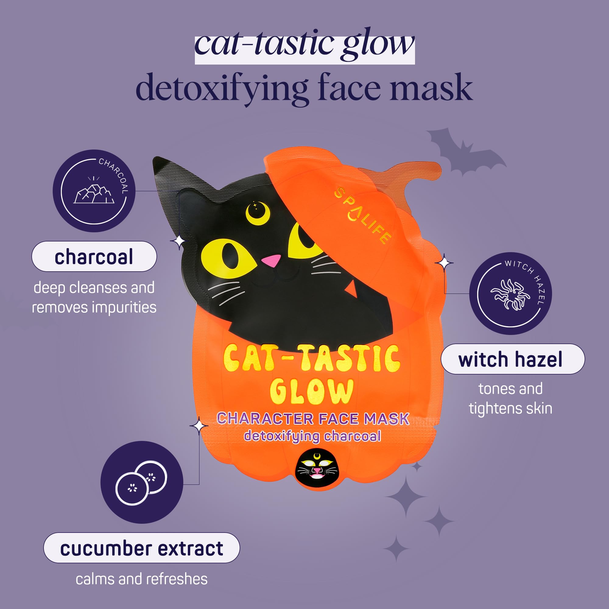 DETOX + TONE WITH CHARCOAL & WITCH HAZEL — Cat-Tastic Glow face masks skincare korean formula uses charcoal to help draw out impurities as witch hazel tones. Our soothing face masks with cucumber extract cools and comforts congested skin so the complexion looks fresh, clarified, and less shiny post-costume or long day.