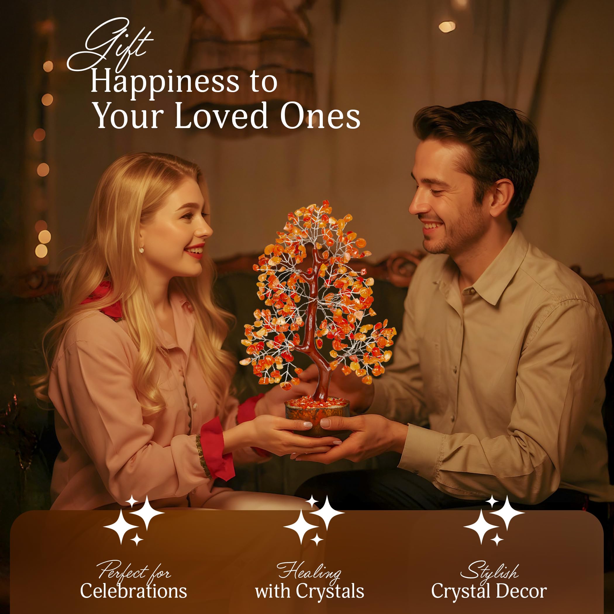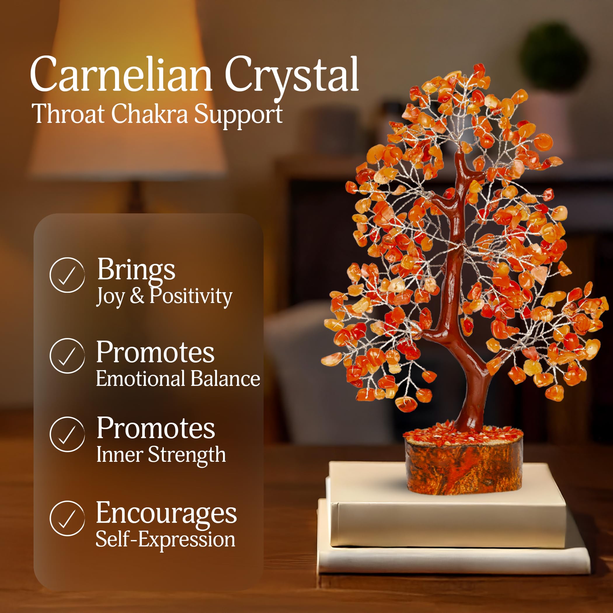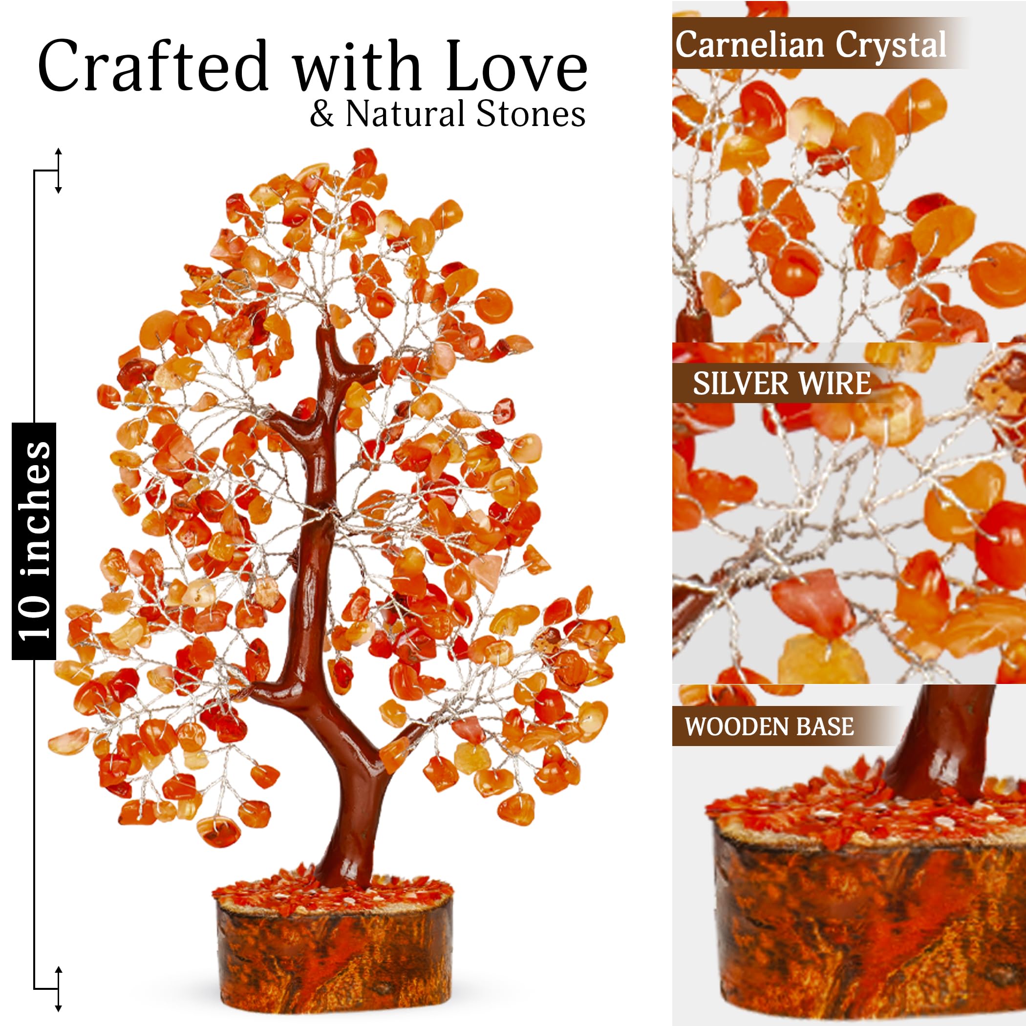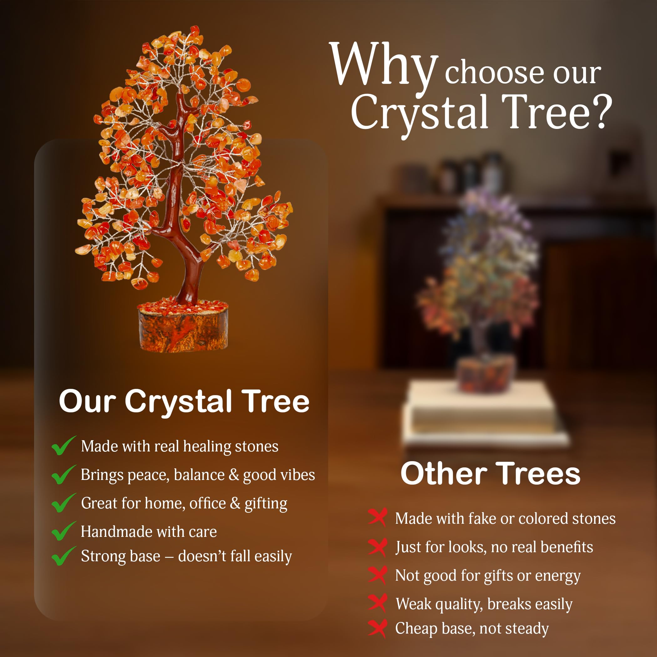 Feng Shui Buddha Tree Healing Properties - With the crystal from pure nature, this feng shui buddha crystal tree is a great sacral chakra healing icon. Also known as a stabilizing gemstone, the carnelian crystal tree is said to restore positive energy motivation, and creativity. The feng shui buddist figurine encourages & promotes positive choices, dispels apathy, and motivates for success. Crystal tree also helps in trusting yourself and your perceptions.