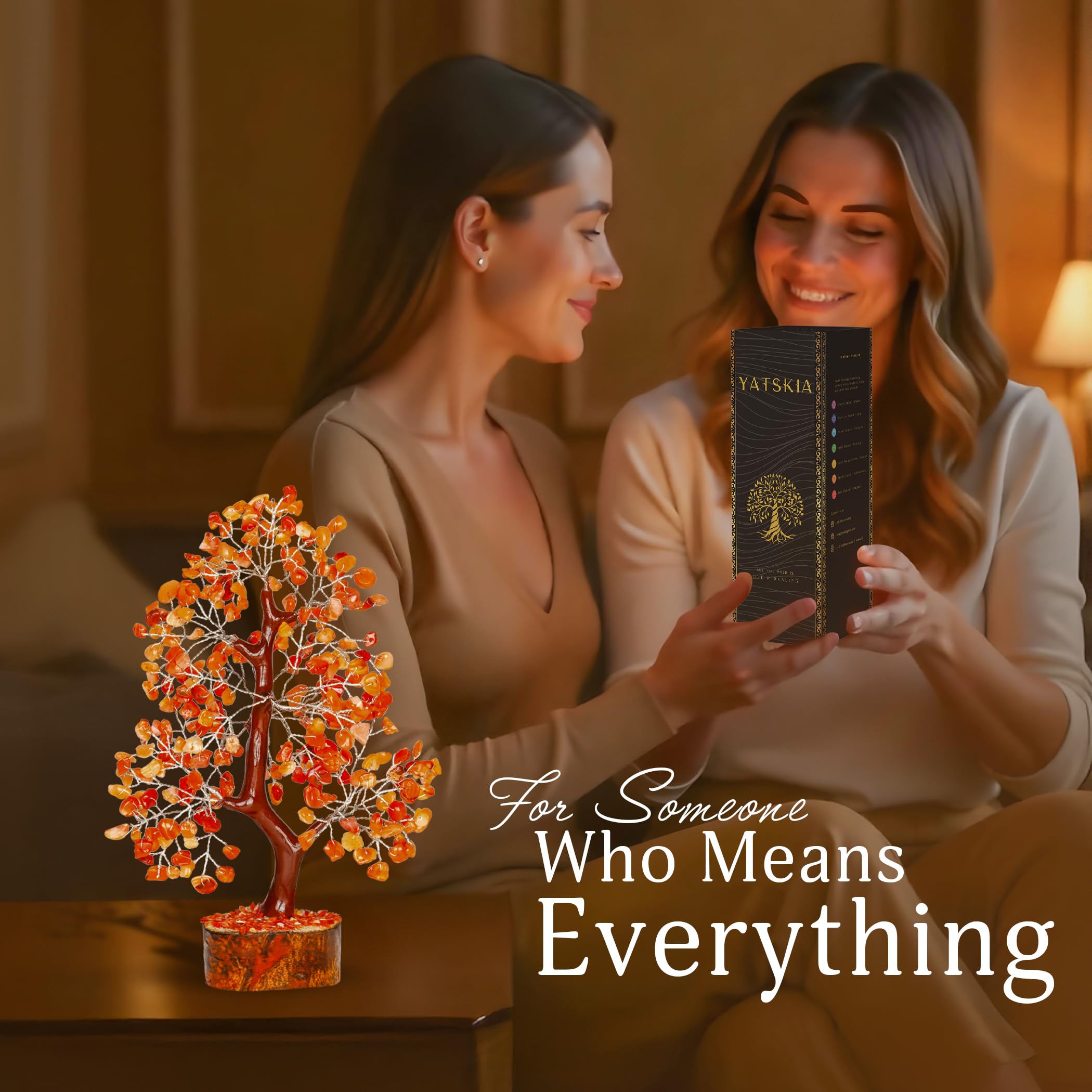 Package Contents - With firm packaging, the box includes an astonishing carnelian crystal tree and a pair of seven chakra healing pendant necklaces (pair includes seven chakra tree of life necklace & seven chakra onyx pendant). The pendants come along with the prosperity tree for seven chakra healing needs. As the branches and the trunk of this Buddhist figurine are flexible, the gemstone money tree comes folded due to packaging reasons. You need to unravel the buddha tree upon receiving.
