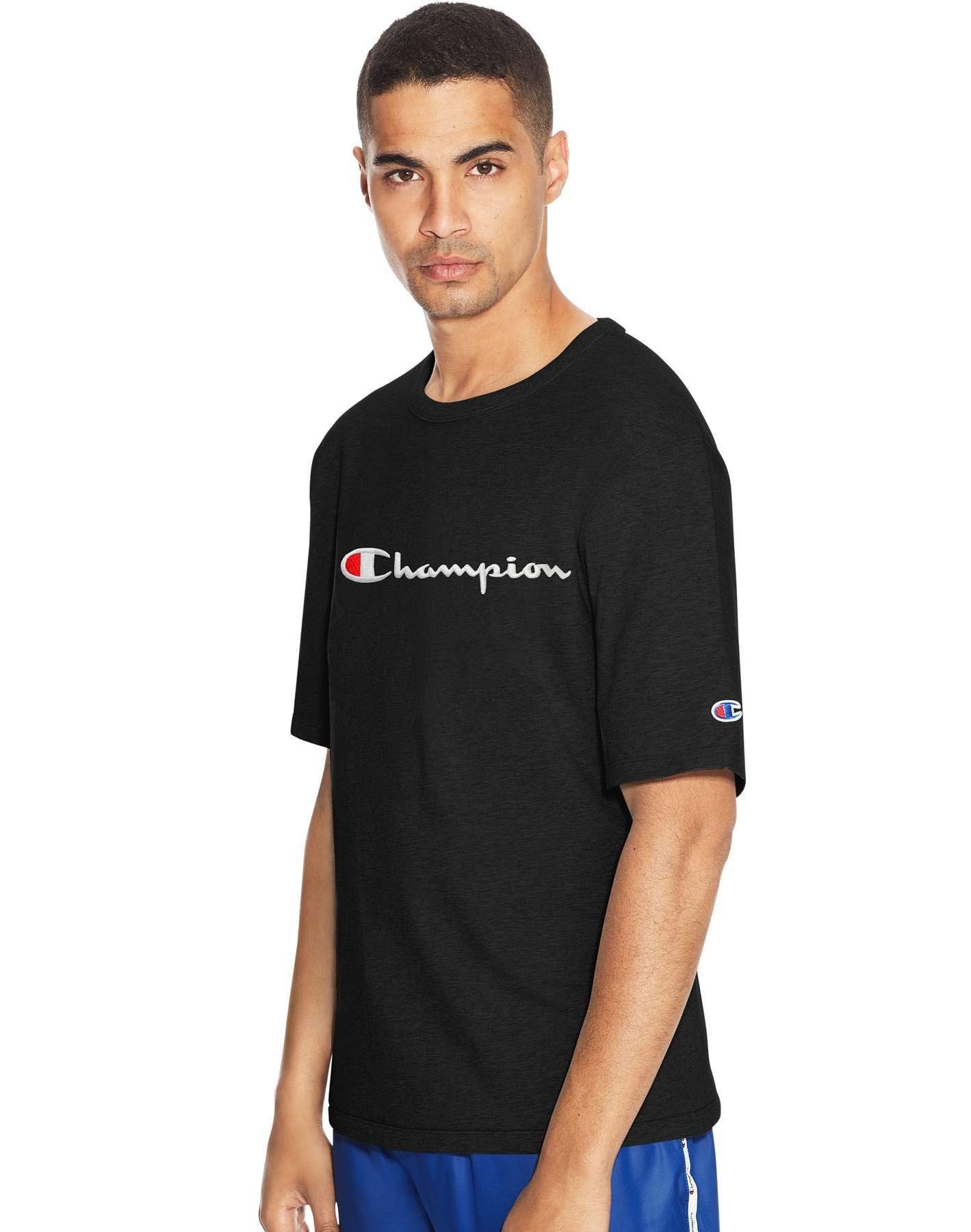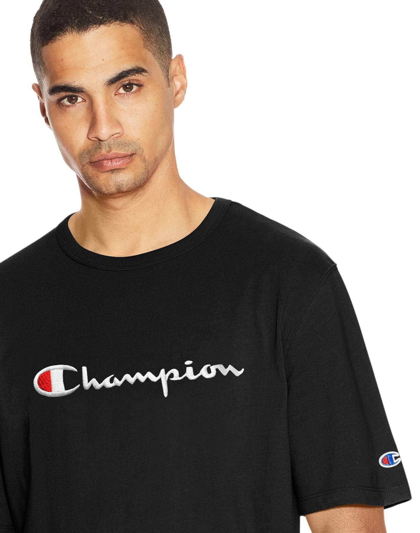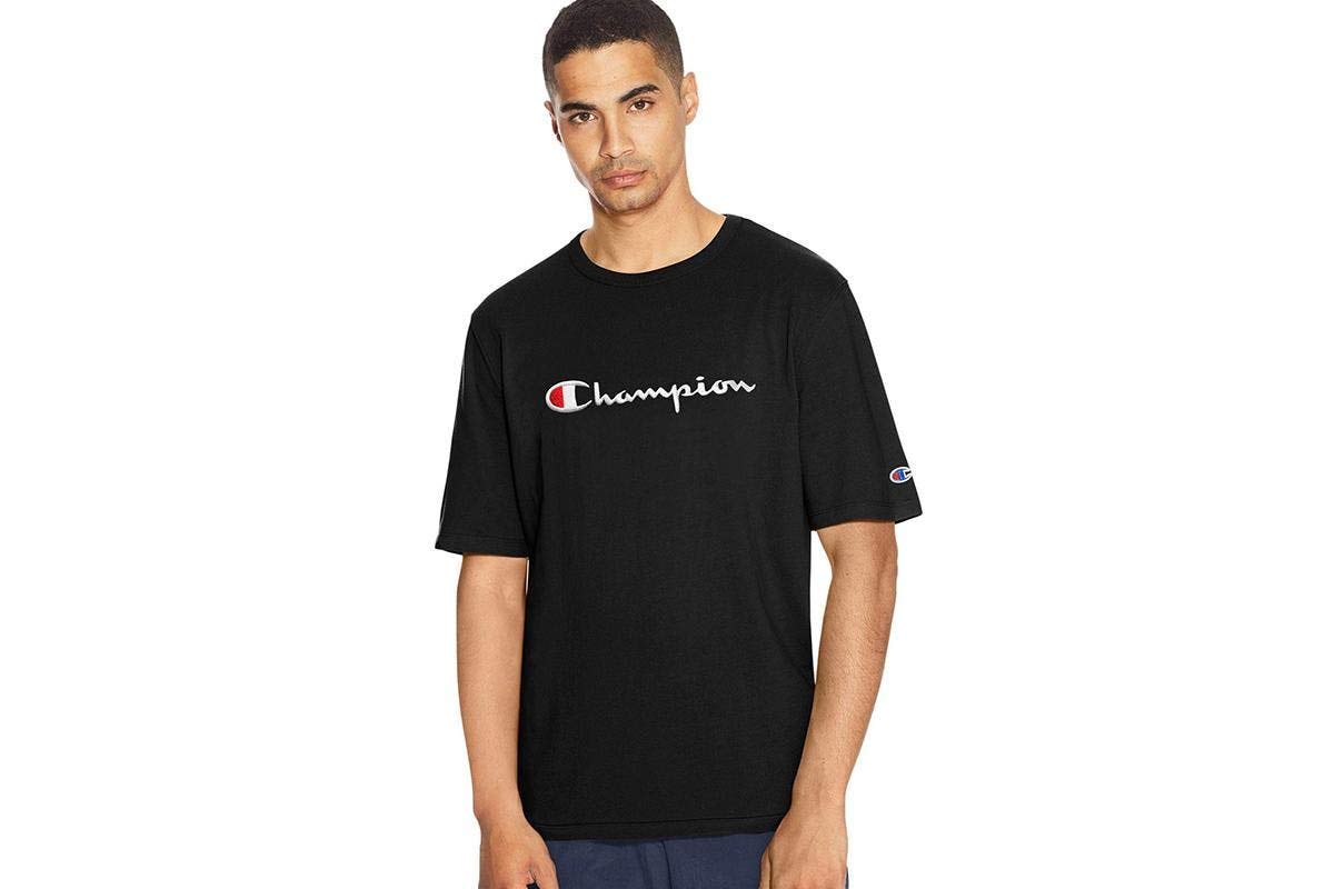 Description JUST THE TEE. Embrace the rich heritage and quality of this heavyweight t-shirt for men – crafted from a comfortable cotton blend, this style is soft on the skin and perfect for your daily rotation. With a classic men's t-shirt silhouette, this design offers a standard fit, a bound neck collar, and iconic branding at the sleeve for a recognizable, sporty look. Made to be a longtime favorite, complete with reinforced stitching and pairs best with your favorite Champion sweats or shorts for an iconic look head to toe.