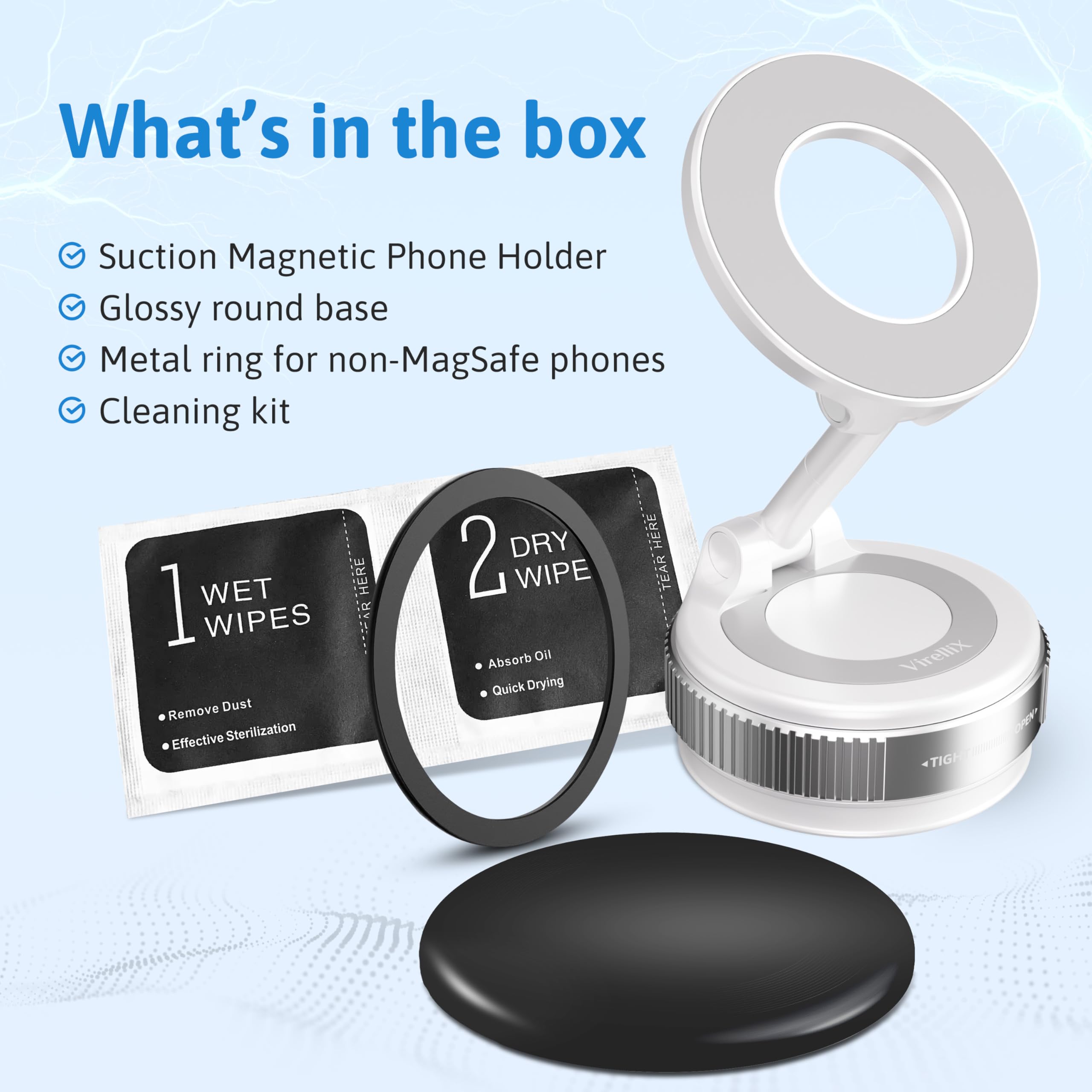 𝗨𝗻𝗿𝗶𝘃𝗮𝗹𝗲𝗱 𝗦𝘂𝗰𝘁𝗶𝗼𝗻 𝗣𝗼𝘄𝗲𝗿 – Magsafe car mount features a strengthened vacuum suction cup with a manual twist-lock mechanism for extreme grip. Stays secure even on bumpy roads. Quick-release design leaves no residue. For best results, use the included adhesive pad on smooth, textured surfaces. Avoid uneven or fluctuating surfaces.