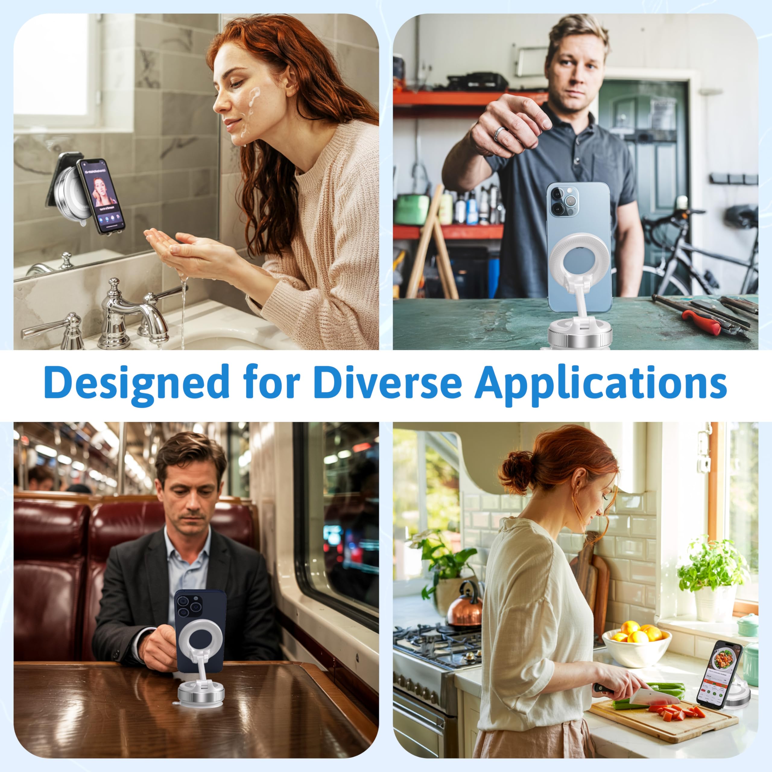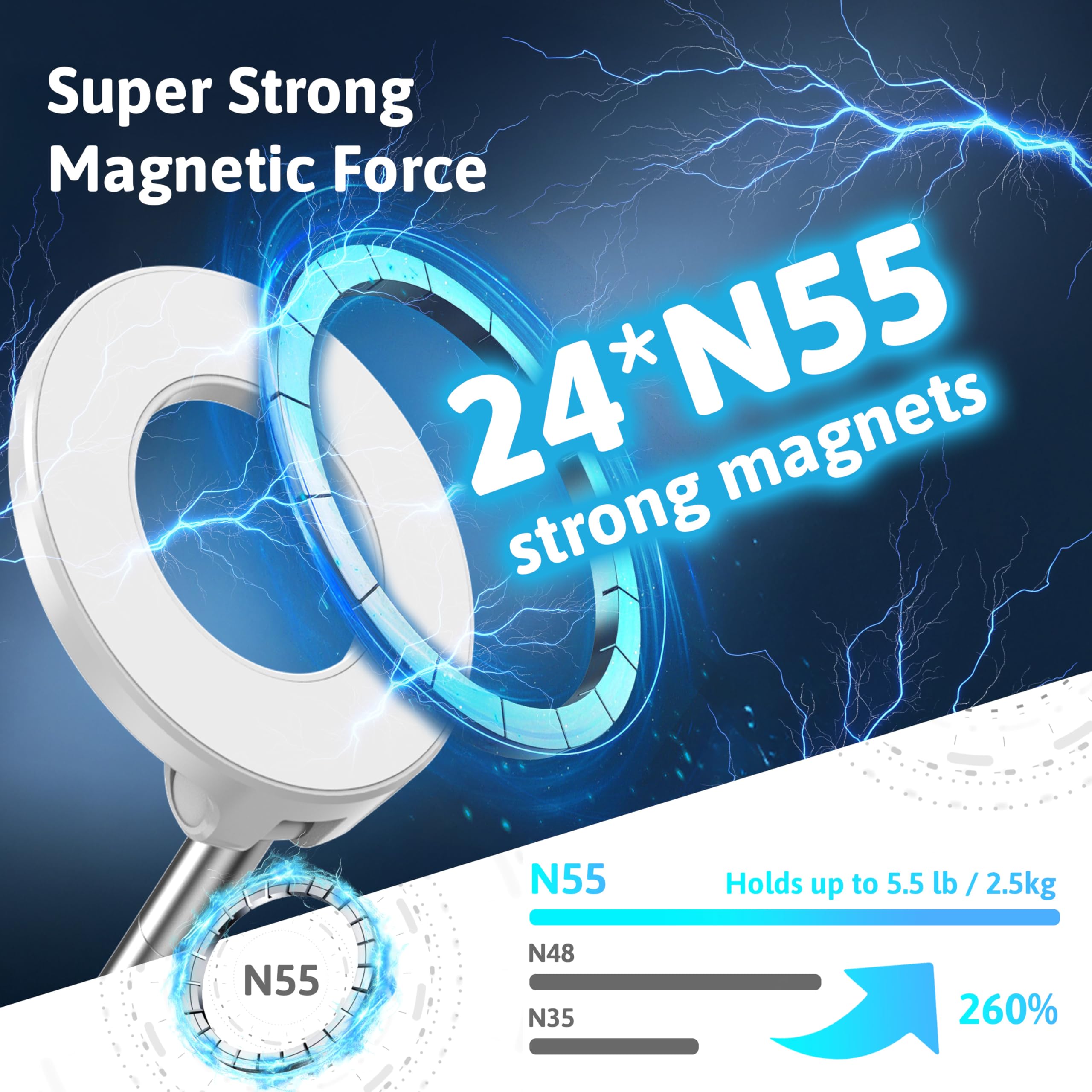 𝗨𝗻𝗶𝘃𝗲𝗿𝘀𝗮𝗹 𝗗𝗲𝘃𝗶𝗰𝗲 𝗖𝗼𝗺𝗽𝗮𝘁𝗶𝗯𝗶𝗹𝗶𝘁𝘆 – Supports iPhone 16 Pro Max/Pro/Plus/16 to iPhone 8, Samsung Galaxy S22/S21/S20, Note 20/10 Plus, and more. Includes a magnetic ring for non-MagSafe phones/cases. Holds phones up to 3mm thick with 2800gf magnetic force.