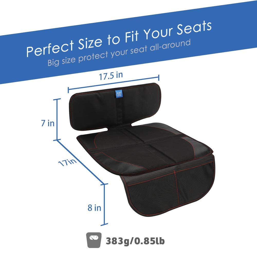 WATERPROOF & EASY TO CLEAN: The Funbliss car seat seat protector is made with waterproof Oxford fabric and thick foam padding, it will prevent water and other liquids from destroying your car interior, simply wipe off the dirt with a damp cloth. It’s also a perfect seat cover for your pets.