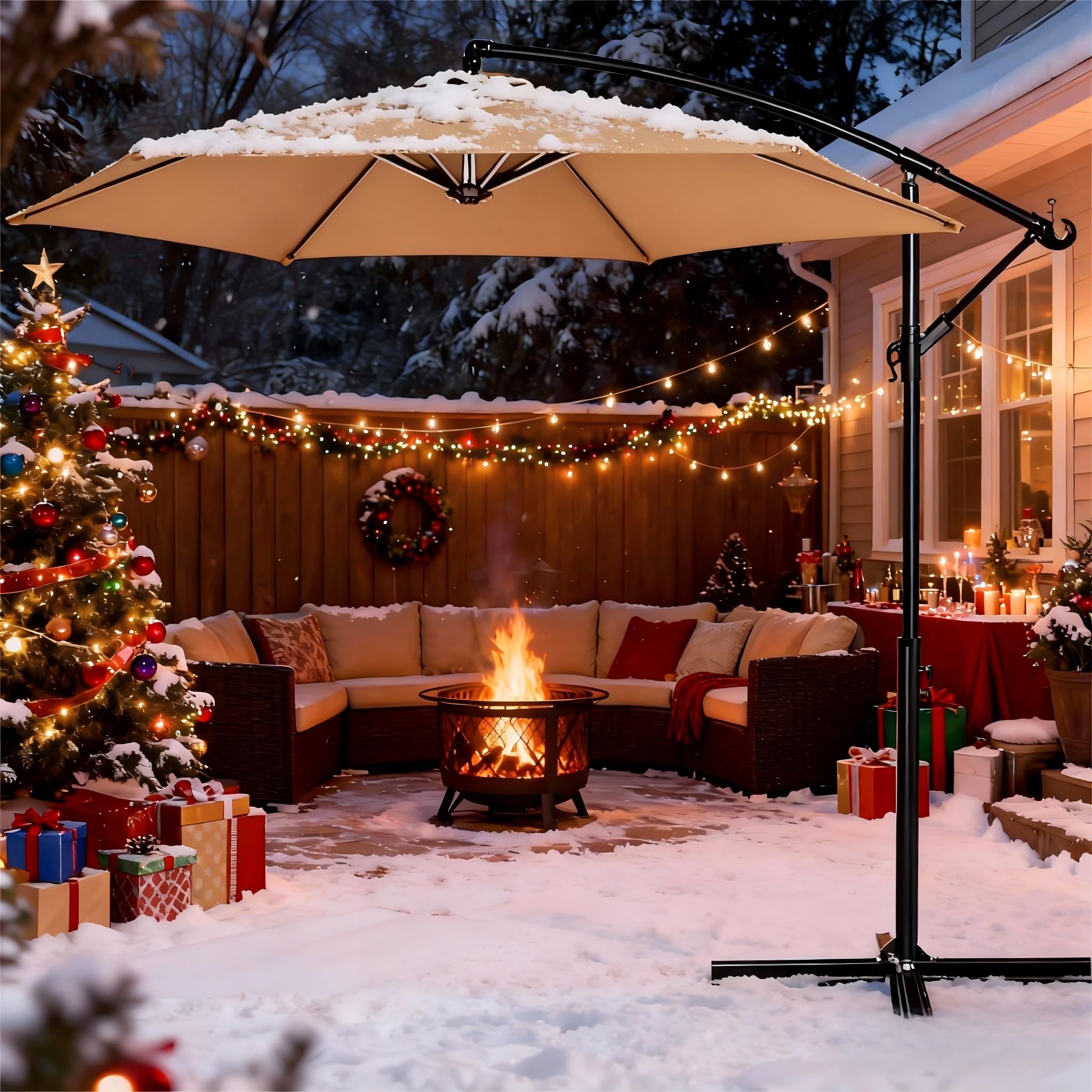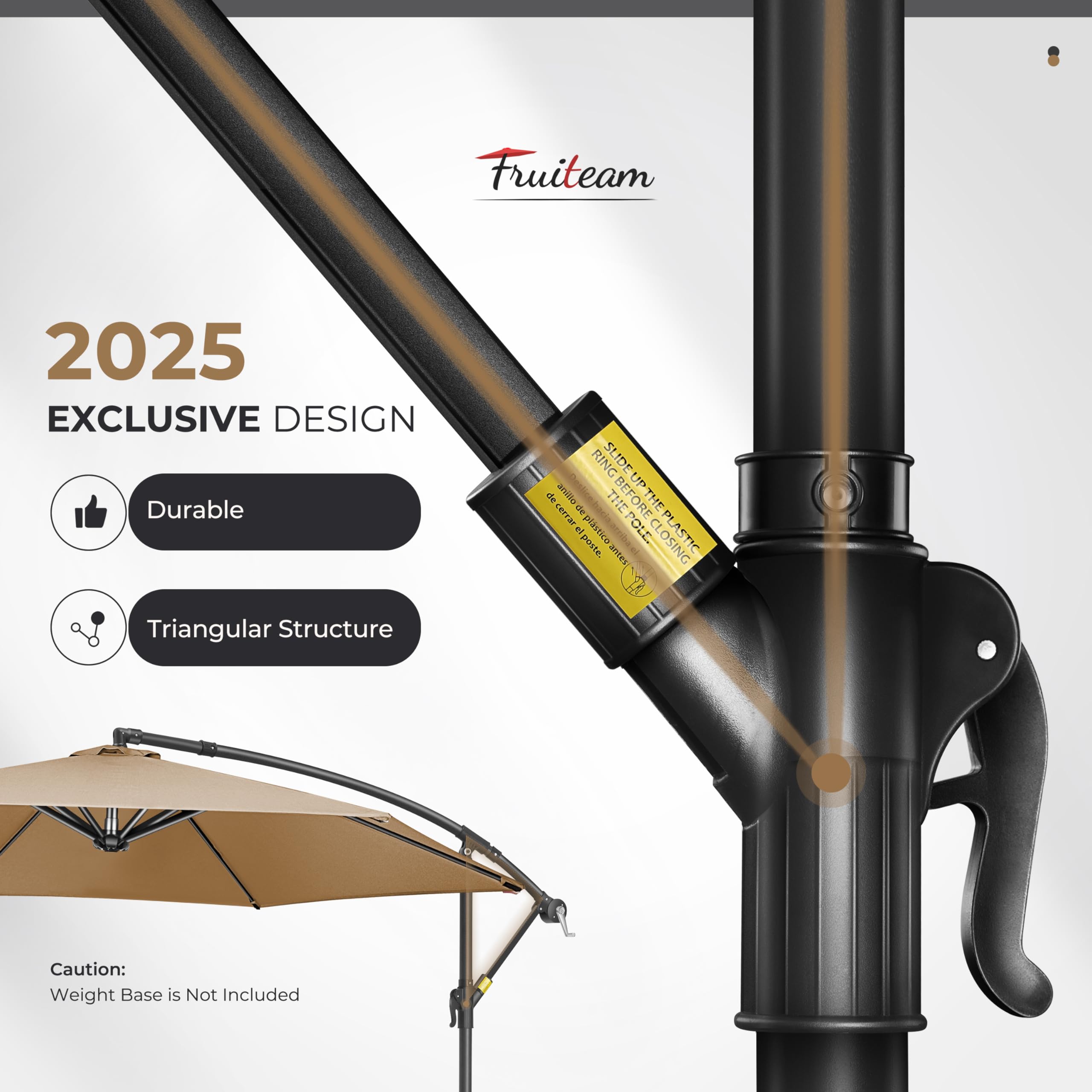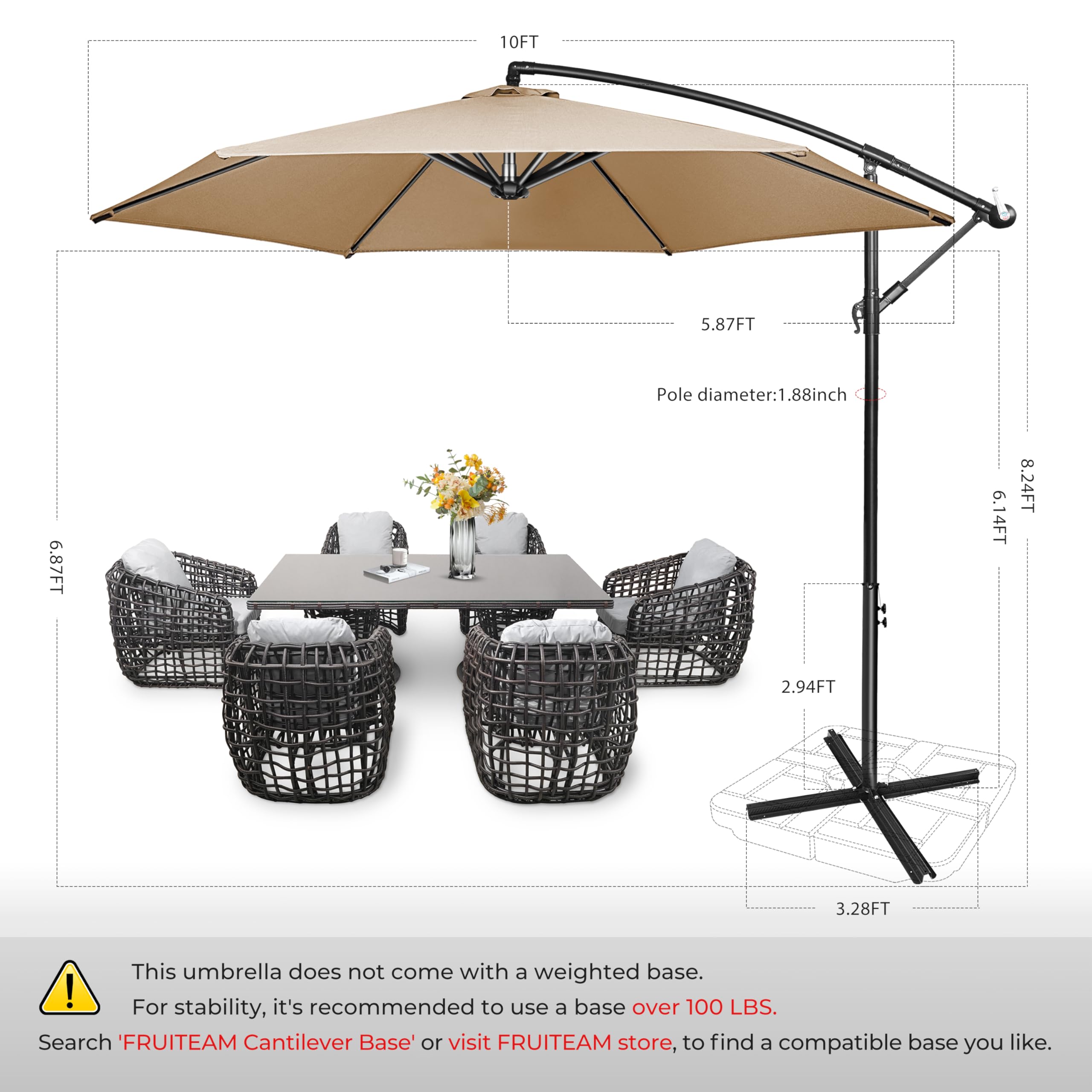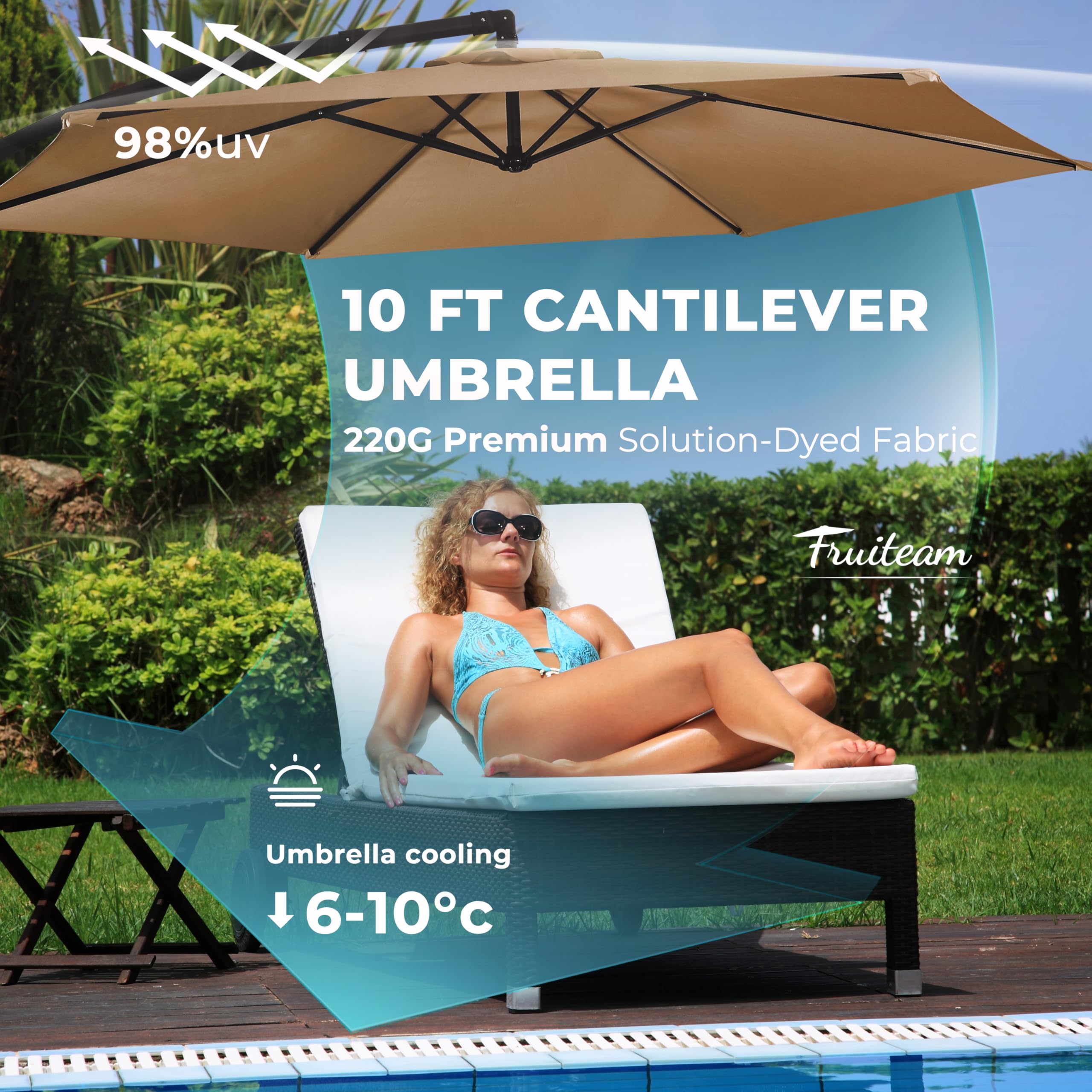 Description FRUITEAM Offset Patio Umbrella, 10FT Heavy Duty Cantilever Outdoor Umbrella with High-Strength Frame & Infinite Tilt, All-Weather UV Protection Sun Shade for Poolside, Garden, Backyard (khaki)