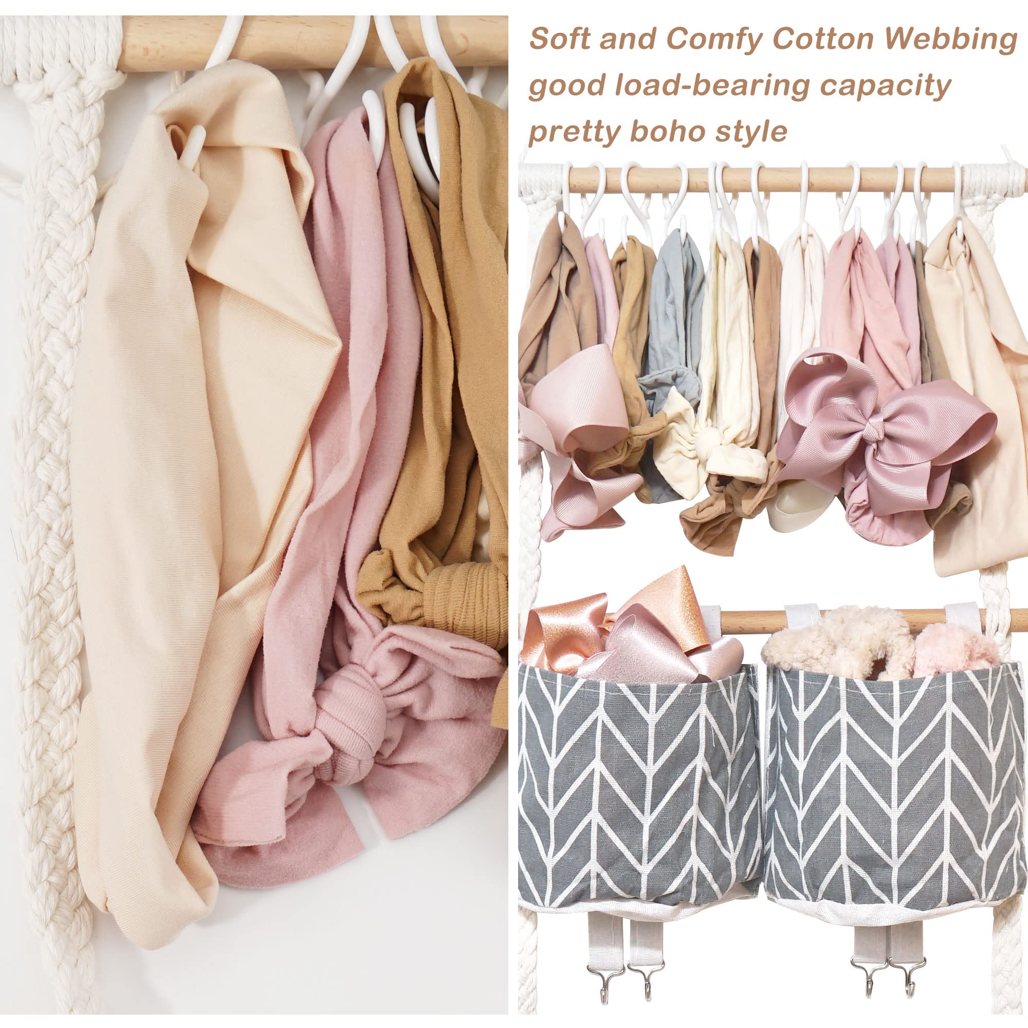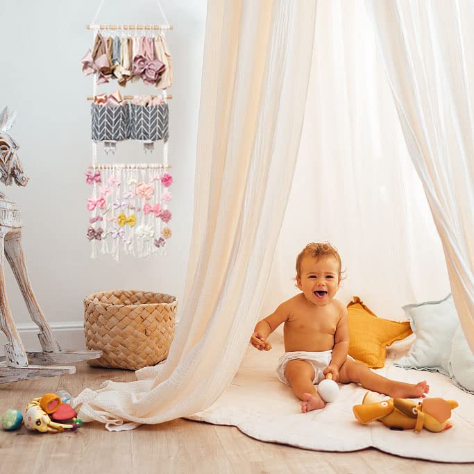 【 Practical Pockets Storage 】- The newly designed baby bow organizer has added 2 super practical pockets, which can better store small items such as baby clips, small hair ties, tiny baby toys, keys, etc. It can also store small items that cannot be hung, practical and beautiful.