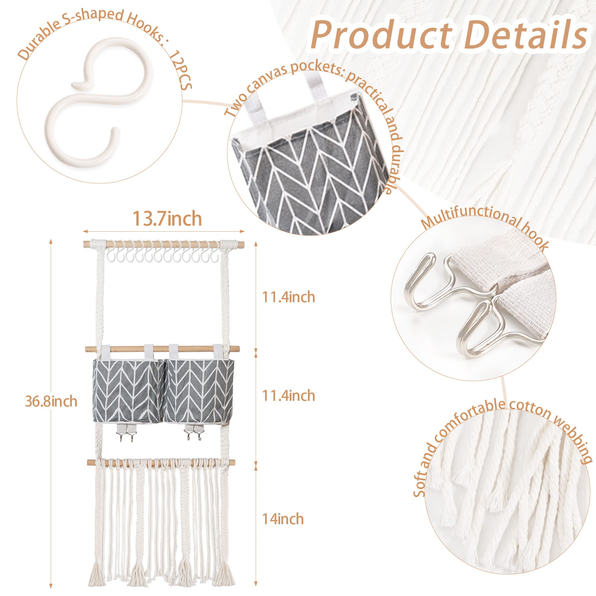 【High Quality Materials】- The plastic S-hook of the bow hanger for girls hair bows is very suitable for storing baby headbands and is not easy to fall off. The storage pocket is made of high-quality cotton canvas and has good load-bearing capacity. The wooden stick is very smooth and sturdy, not easily deformed or cracked, making it more durable.