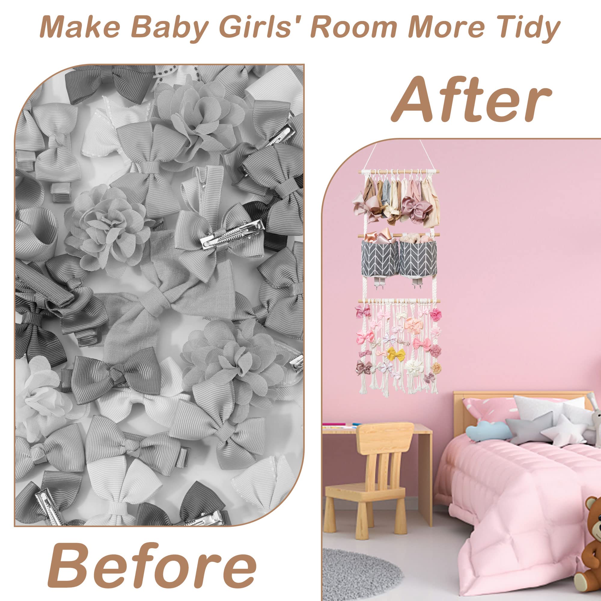 【Great Gift for Baby Girls & Moms】- The hair bow holder organizer for baby girls makes it easier for mothers to quickly find hair accessories to match their baby's clothes, a great helper for mothers. it's a perfect gift for baby birthdays, newborn gifts, baby showers, home photography, and holidays. Mom will love it very much.