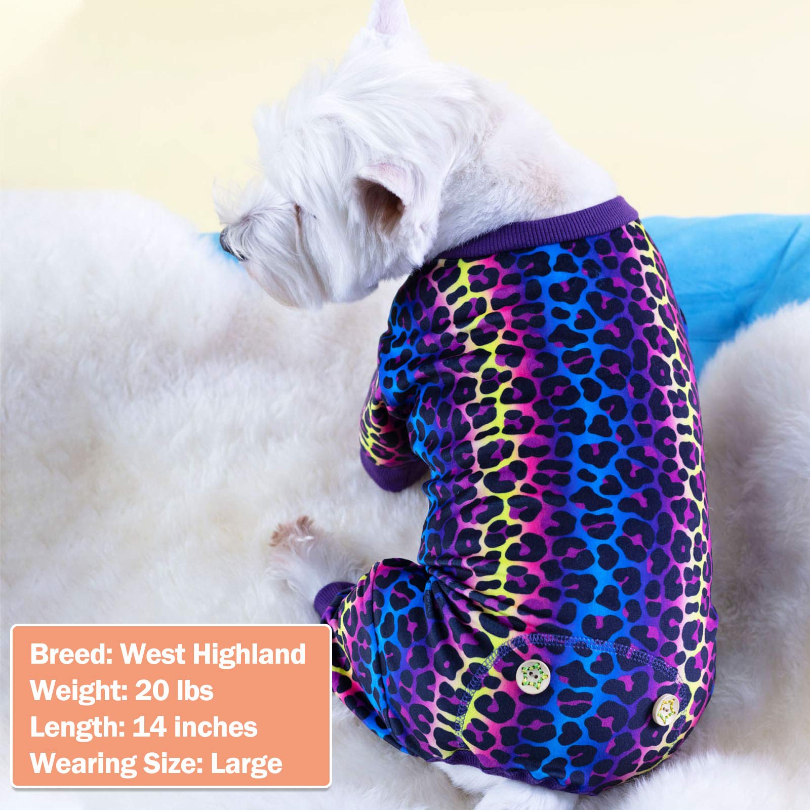 Dog pajamas in leopard printing is made of soft stretchable velvet, very comfy to wear. Pullover design dog pjs, easy to put on and take off
