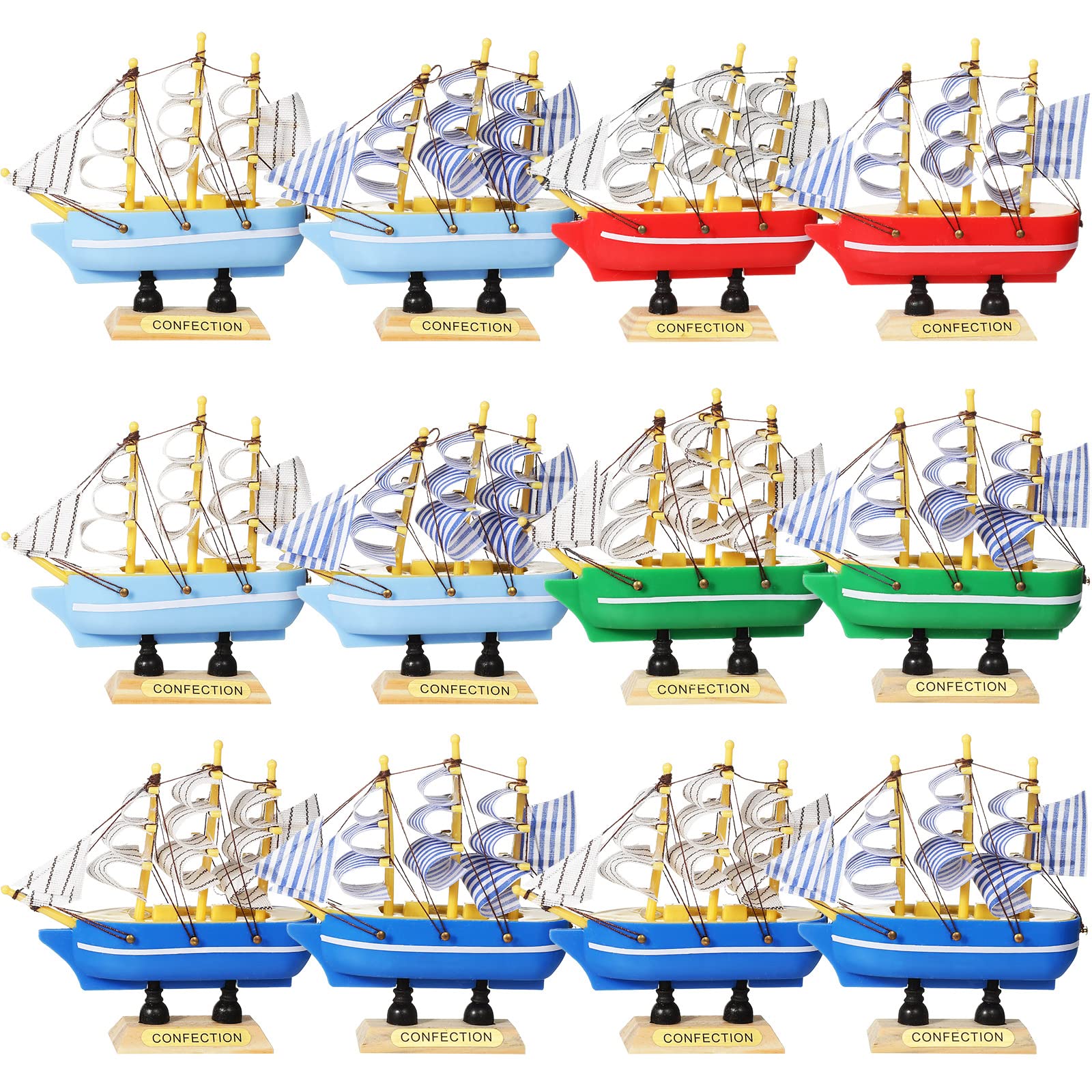 Style and Amount: the color of the plastic boat model is simple, and the hull has 4 colors of red, green, dark blue, light blue; The hull has 2 styles of sails, black and white stripes and blue and white stripes; The 12 pieces boat models are enough to meet your needs