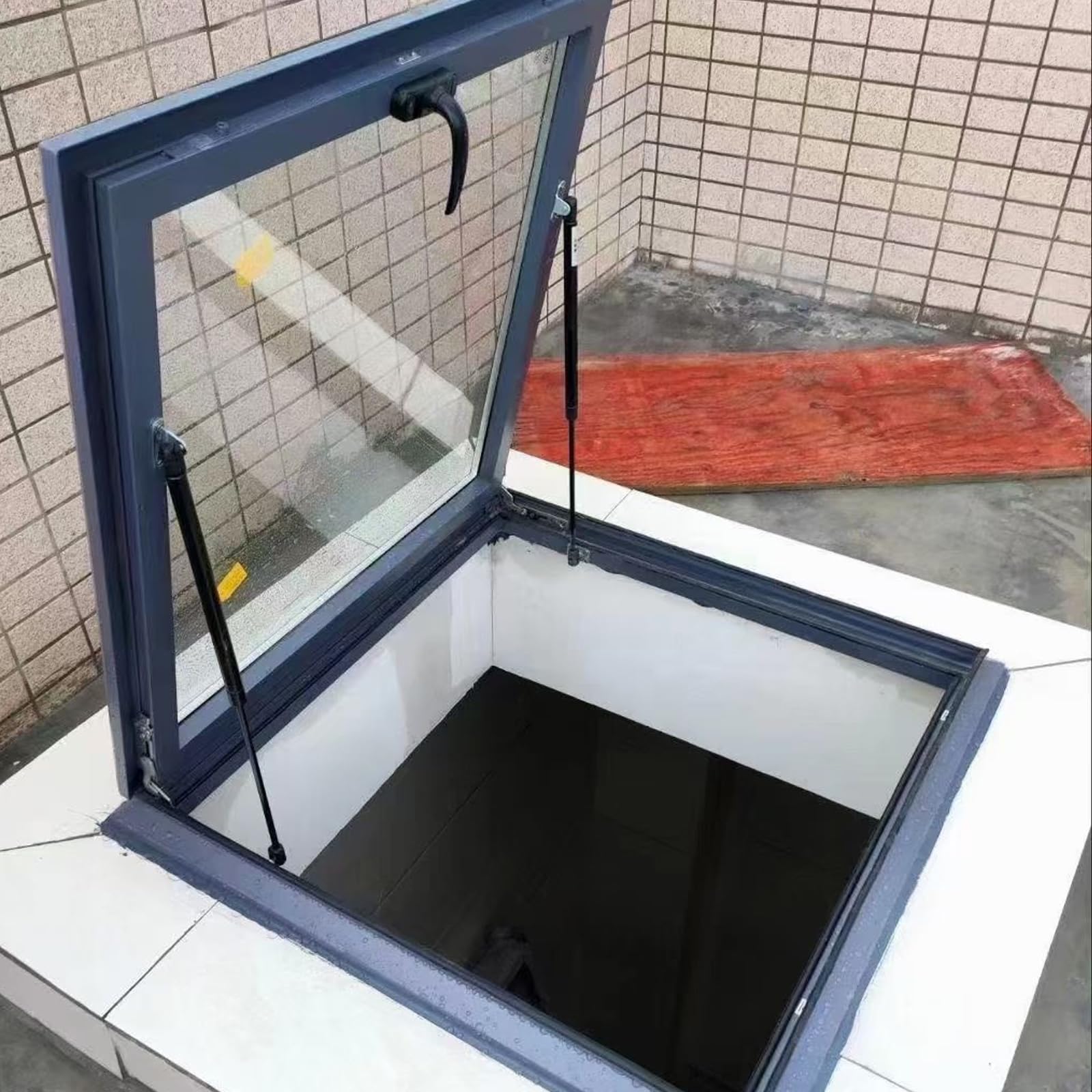 Sturdy and durable: This glass skylight cover is equipped with 2 hydraulic support rods, and the cover can be easily opened or closed. The large opening design is convenient for people to enter and exit. The sealing rubber gasket can effectively prevent rain, dust, debris, etc. from entering the building