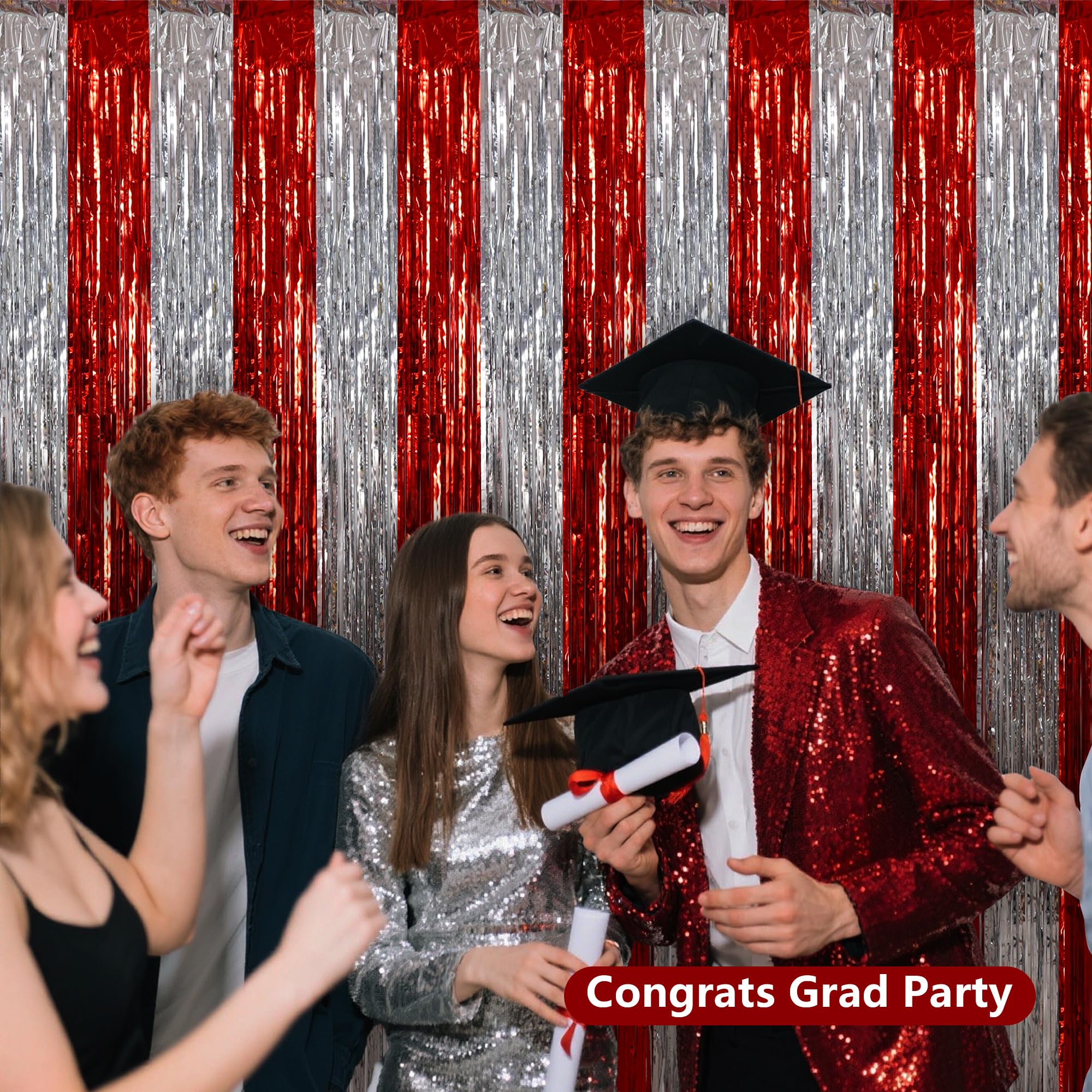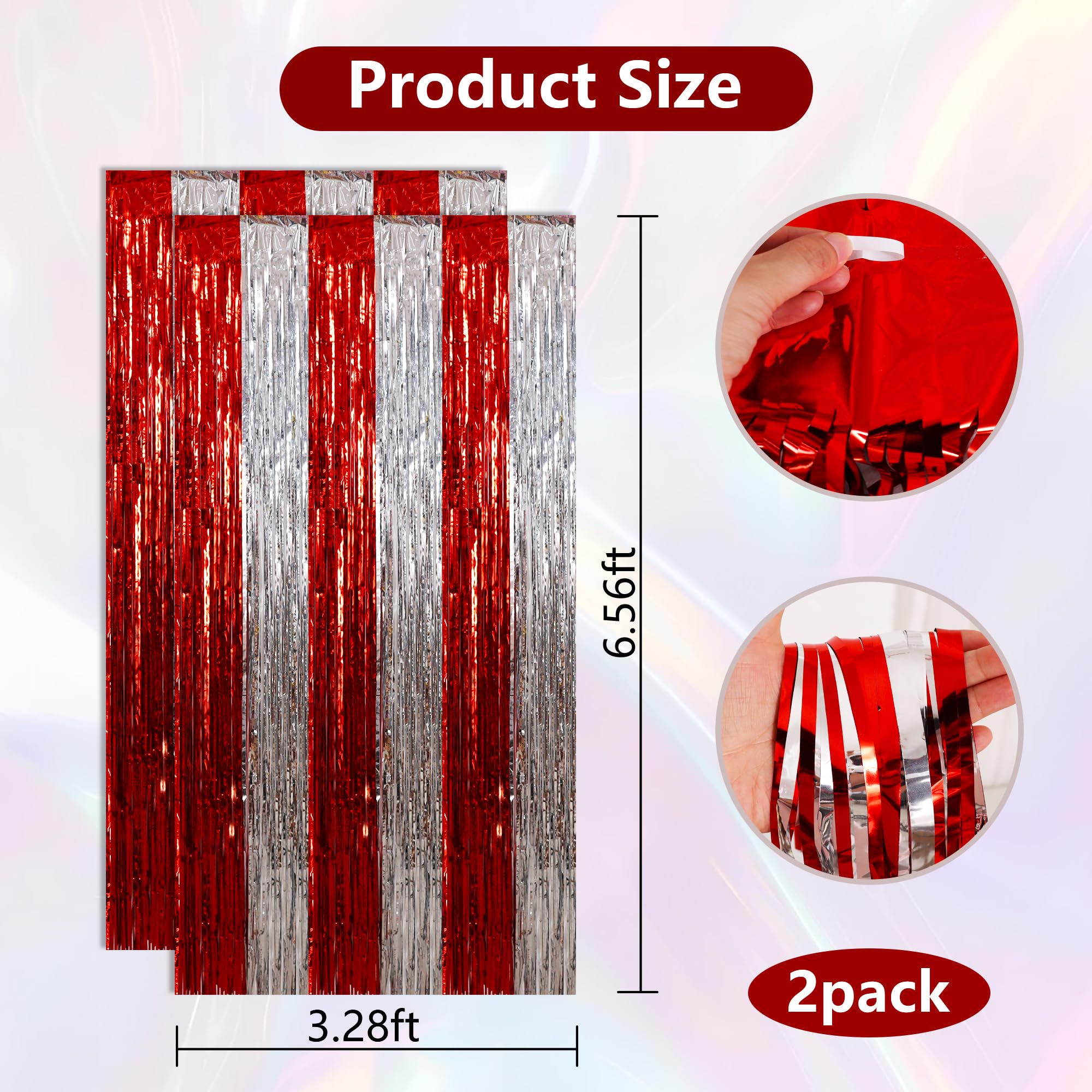 Dimension: these foil fringe backdrop curtains are 3.28 x 6.56 ft in size; They are cuttable, you can adjust their size in your own way.