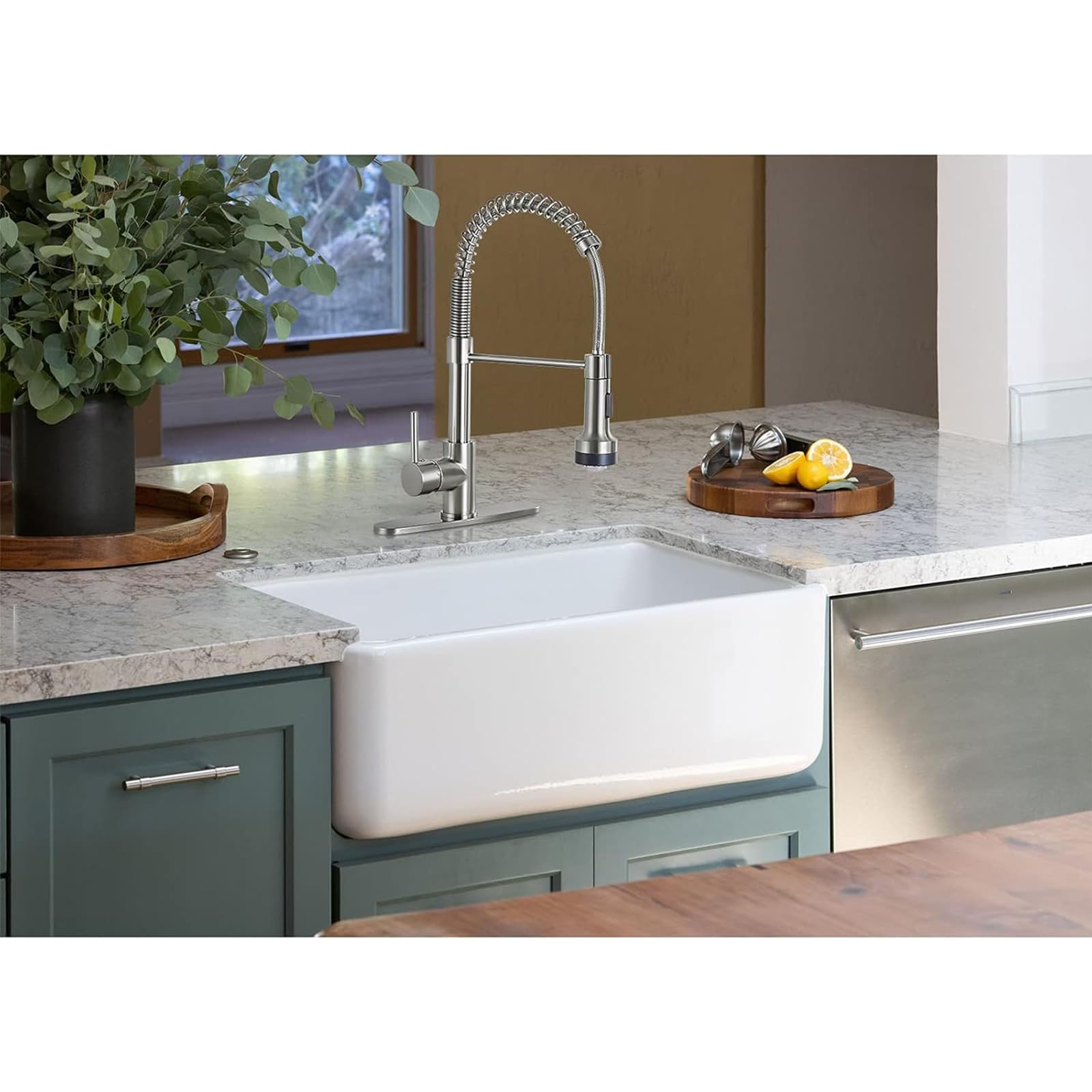 Modern Versatile Dual Ends: High Arc Spring Design Kitchen Commercial Faucet, with the pull-down dual action spray head, allows for your choice of aerated flow or powerful spray for all your needs, suitable for home kitchen sink farmhouse RV vessel basin. Coming in an array of colors that match any aesthetic for home decor and using with DJS kitchen faucet. Dual water dispensers for multiple choices.