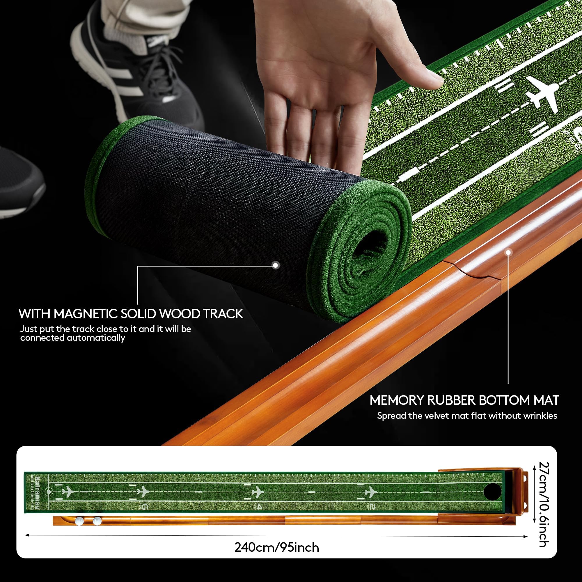 【Designed for golfers of all levels】: The Kalramay Indoor Putting Green offers practice distances from 2 feet to 7.5 feet, making it an ideal choice for golfers of all levels. With its easy installation, ball storage and two ways to return the ball with a magnetic return track, you can easily improve your game no matter your skill level.
