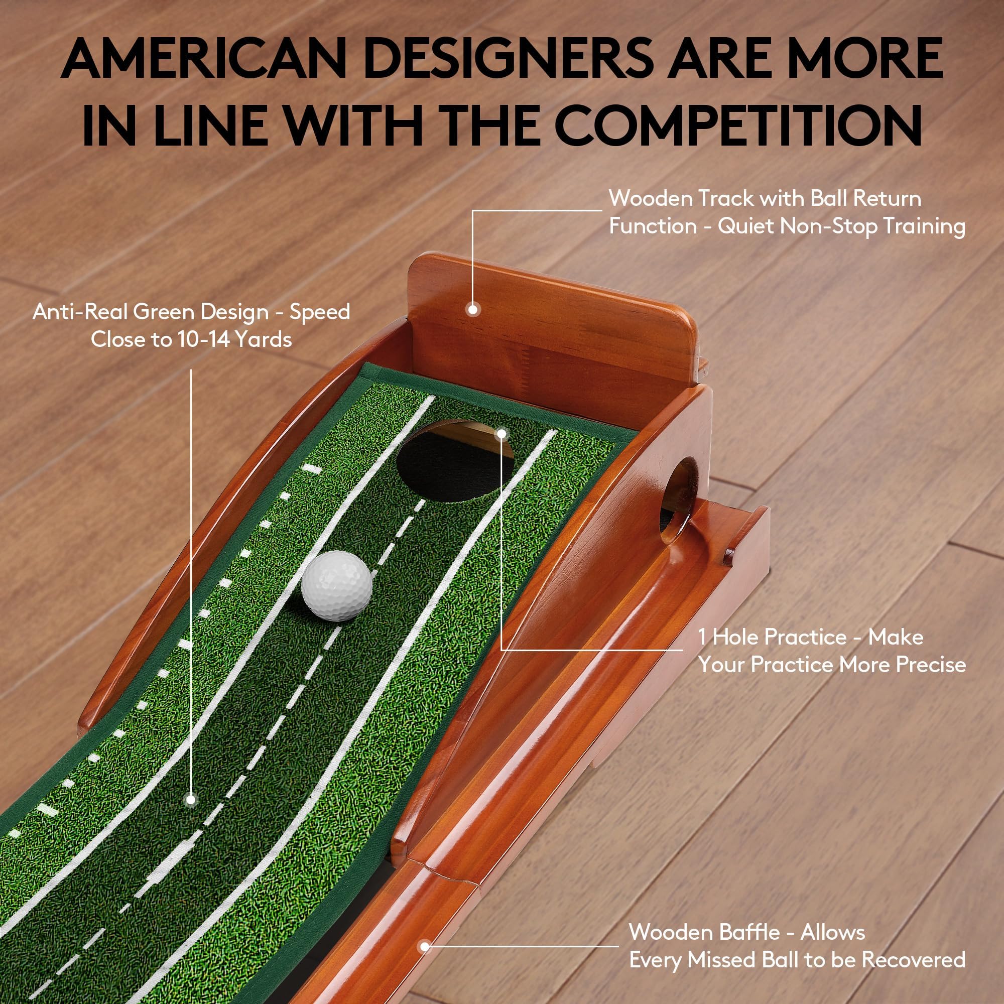 【Ultimate Worry-Free Support for practice putting mat】: This innovativel golf putting mat combines style, durability and performance. It focuses on realistic practice, providing a seamless surface and a solid wood frame. It is perfect for indoor or outdoor use and is designed for anyone who is passionate about improving their putting skills. Enjoy 1-year returns and 24-hour quick response to issues. Bringing you peace of mind.