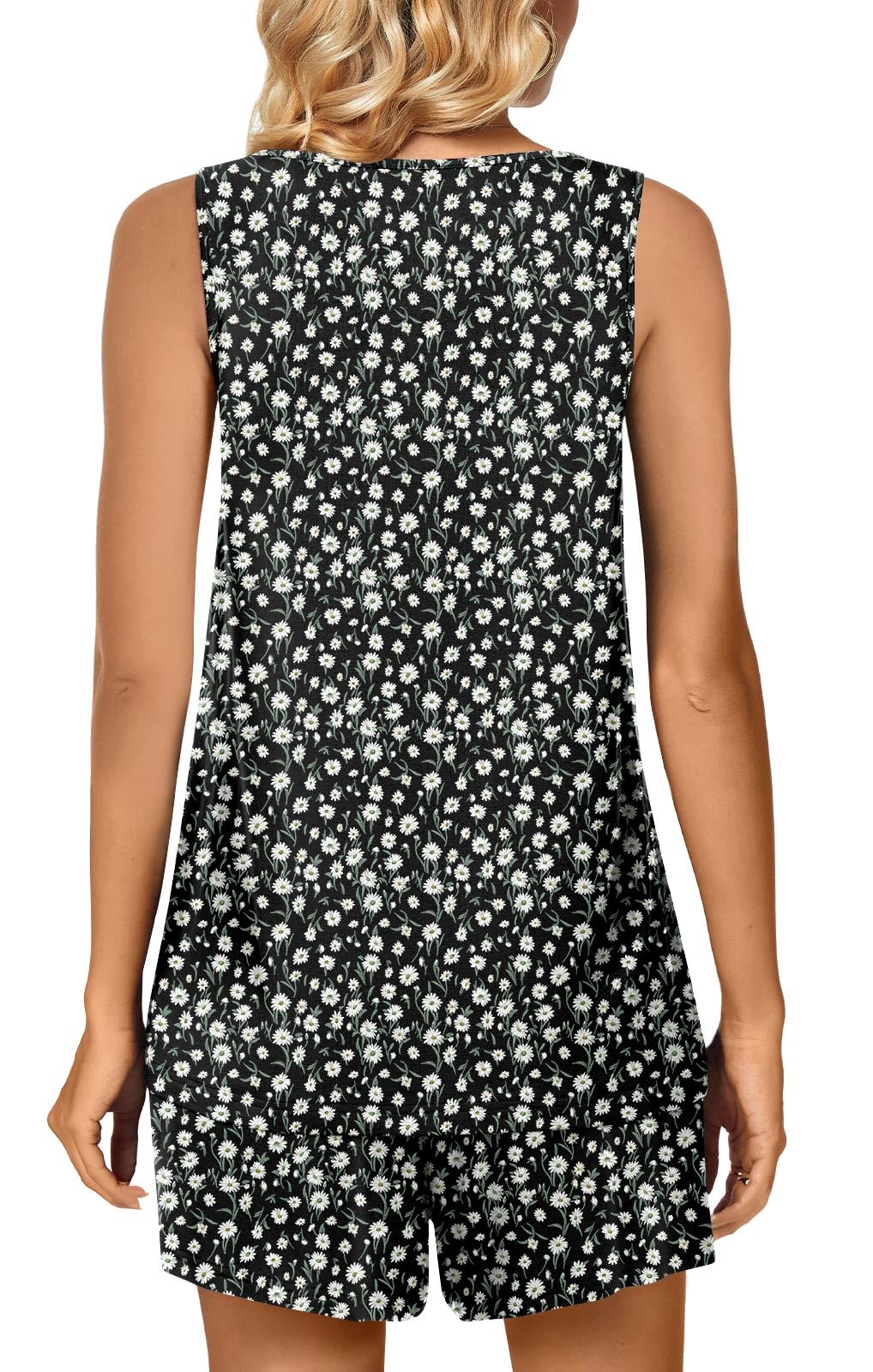 Fashion Simple Design: The ladies pajamas sets sleeveless tank tops with pleated, scoop neck design. Womens pajamas set tops perfect length covers what you need it to like your tummy. The bottoms are very roomy and fit nice with an elastic waistband adapting to different body shapes for all-night comfort. Pajamas bottoms have nice deep hidden pockets to hold cell phone or small things