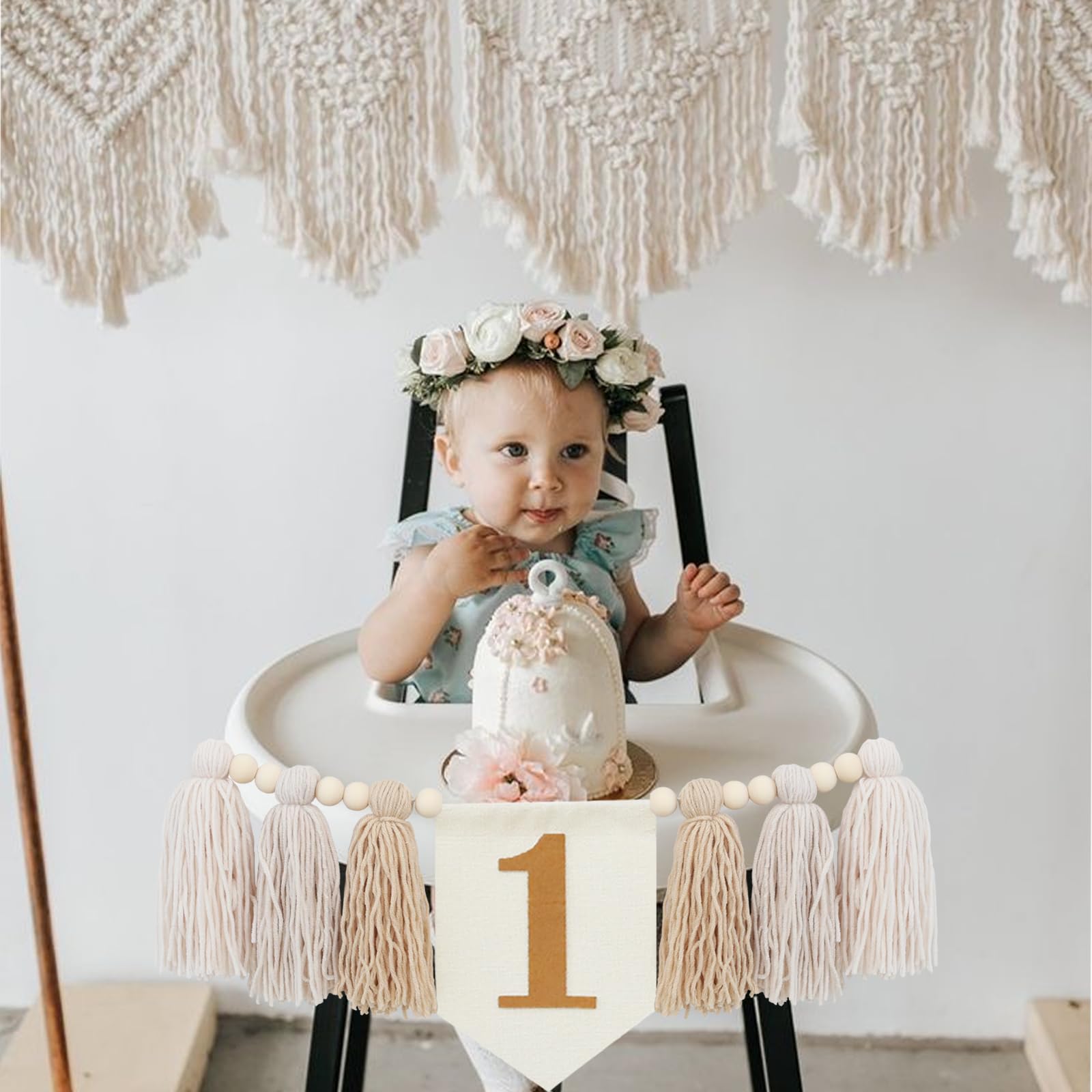 First Birthday Highchair Banner Decoration:Use this highchair tassel banner to decorate and embellish your child first birthday;also use it as a dessert table or cake photo background image along with the decoration to present the whole gorgeous birthday party