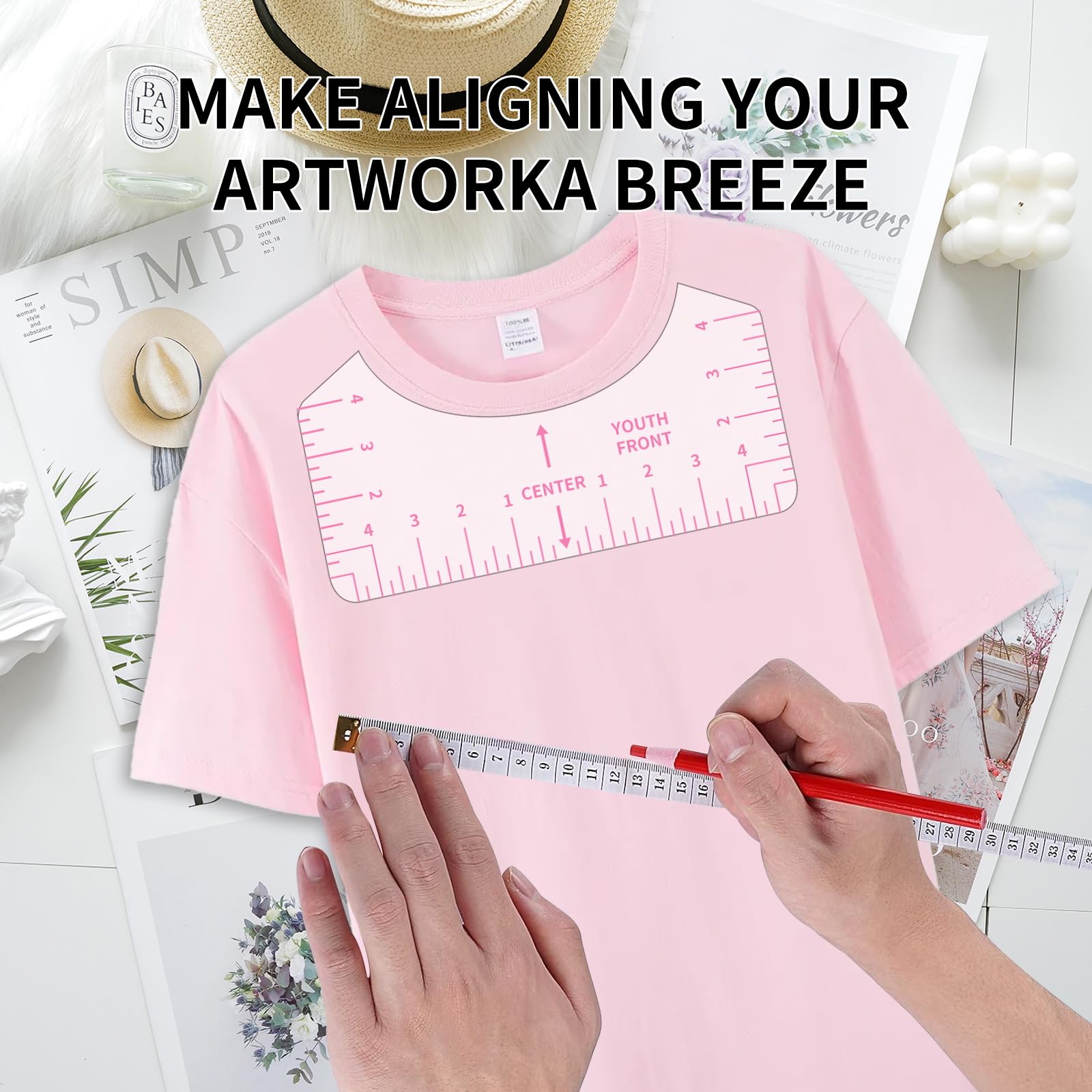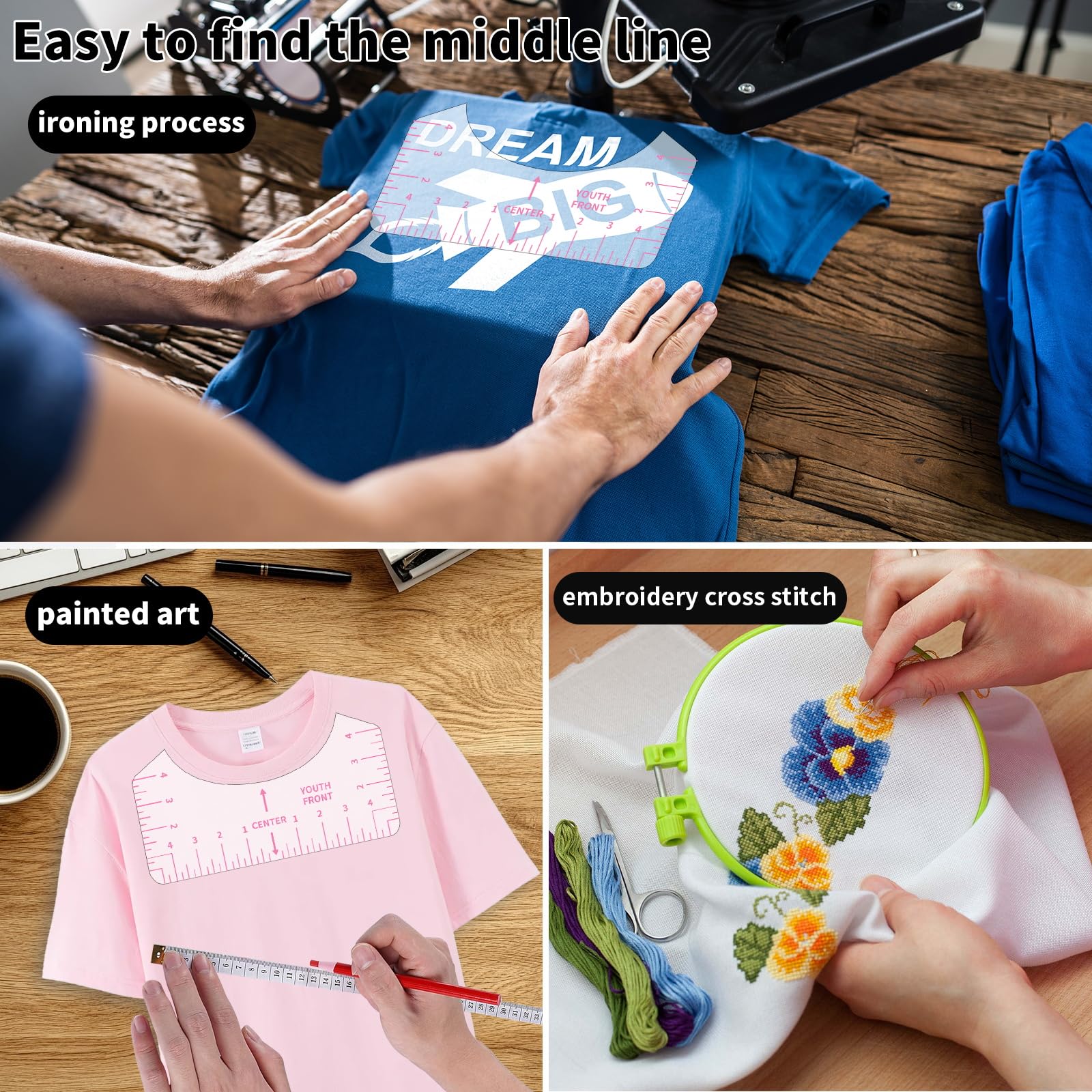 T-Shirt Ruler Alignment Tool Product Description This T-shirt ruler alignment tool is a practical accessory for DIY clothing making and decoration, specifically designed to solve the problem of inaccurate positioning during T-shirt printing, heat transfer, and embroidery. Crafted from durable materials, it features clear and precise size markings that help you quickly find key positioning pointsâsuch as the T-shirtâs center and the distance below the neckline. Whether for home DIY projects or small studio batch operations, it boosts positioning efficiency and enhances the overall aesthetics of finished products. It fits T-shirts of different sizes, can be easily stored after use, and requires no complicated adjustments, making it beginner-friendly. This tool is a must-have positioning aid for T-shirt decoration enthusiasts and handcraft creators.