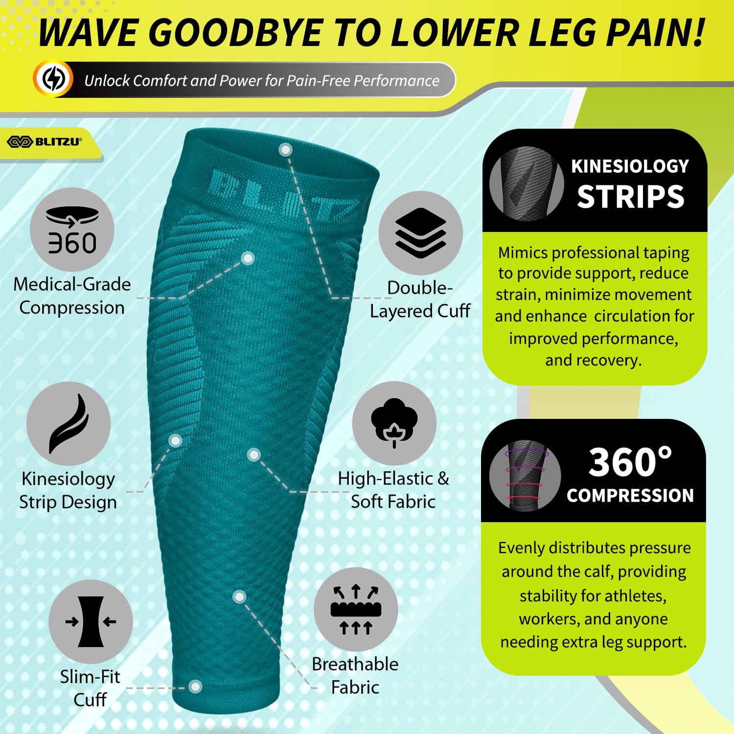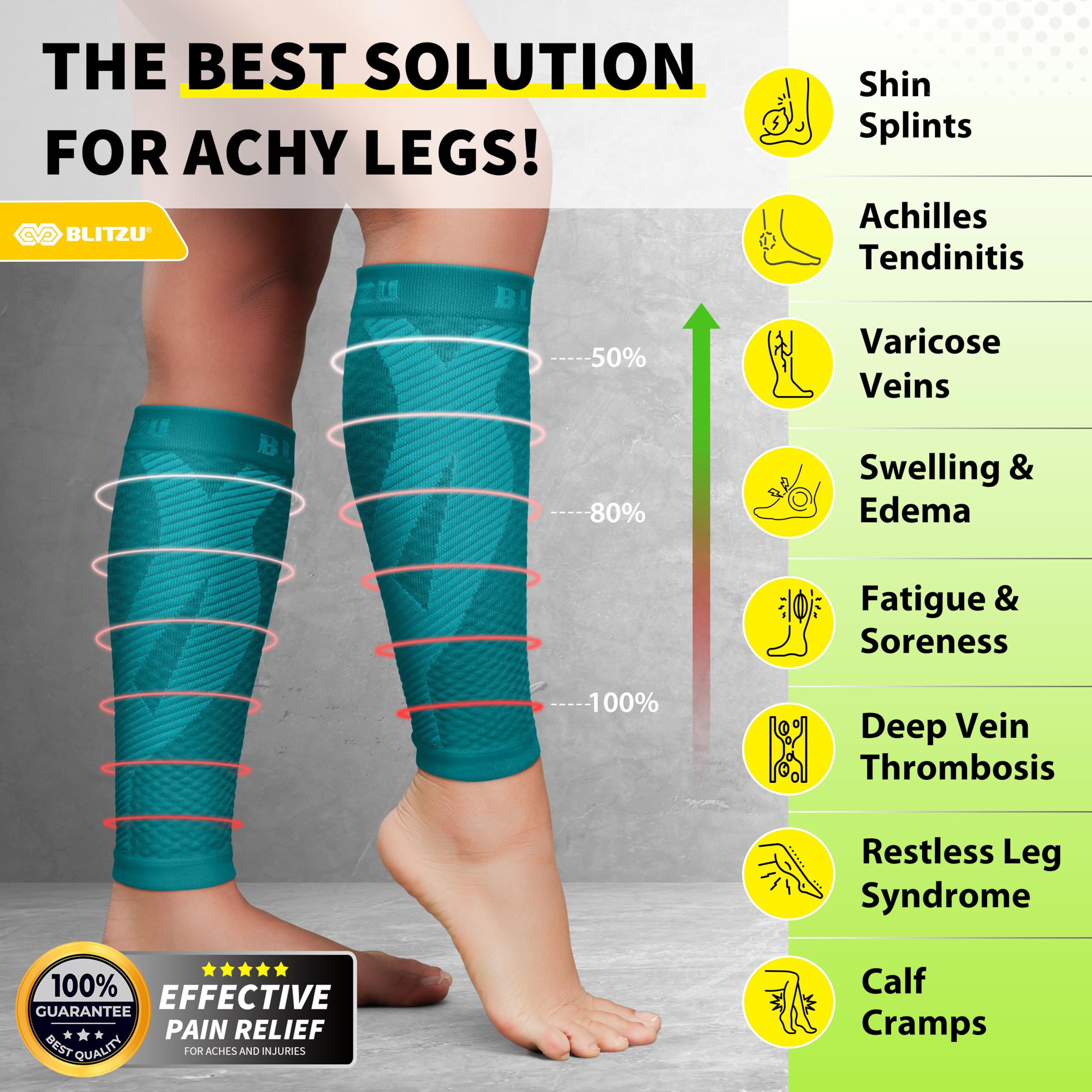 Effective Compression for Swelling & Varicose Veins Relief: The BLITZU Calf Compression Sleeves feature graduated compression to improve blood circulation, reduce swelling, and alleviate discomfort caused by varicose veins and pregnancy-related leg swelling, making them perfect for nursing mothers and individuals with circulation issues.