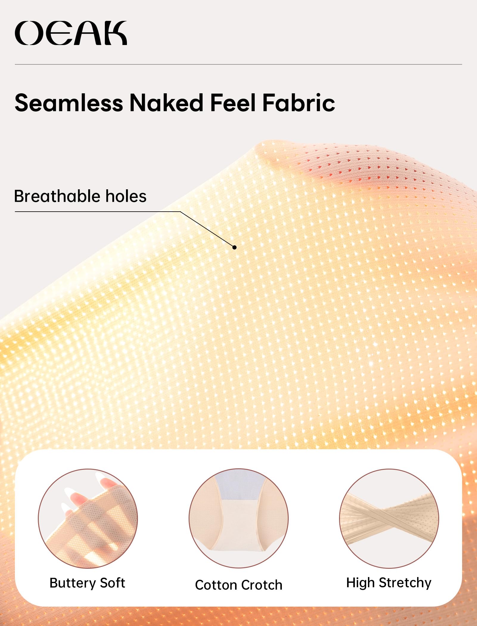 High-Tech Naked-Feel Shapewear - Seamless, breathable mesh offers buttery-soft compression that fits snugly without panty lines. Airflow holes keep you comfortable, while the cotton crotch allows confident commando wear. Easy on/off with all-day shaping. High-waisted tummy control flatters all body types, lightweight while enhancing curves. Perfect under dresses for a streamlined silhouette.
