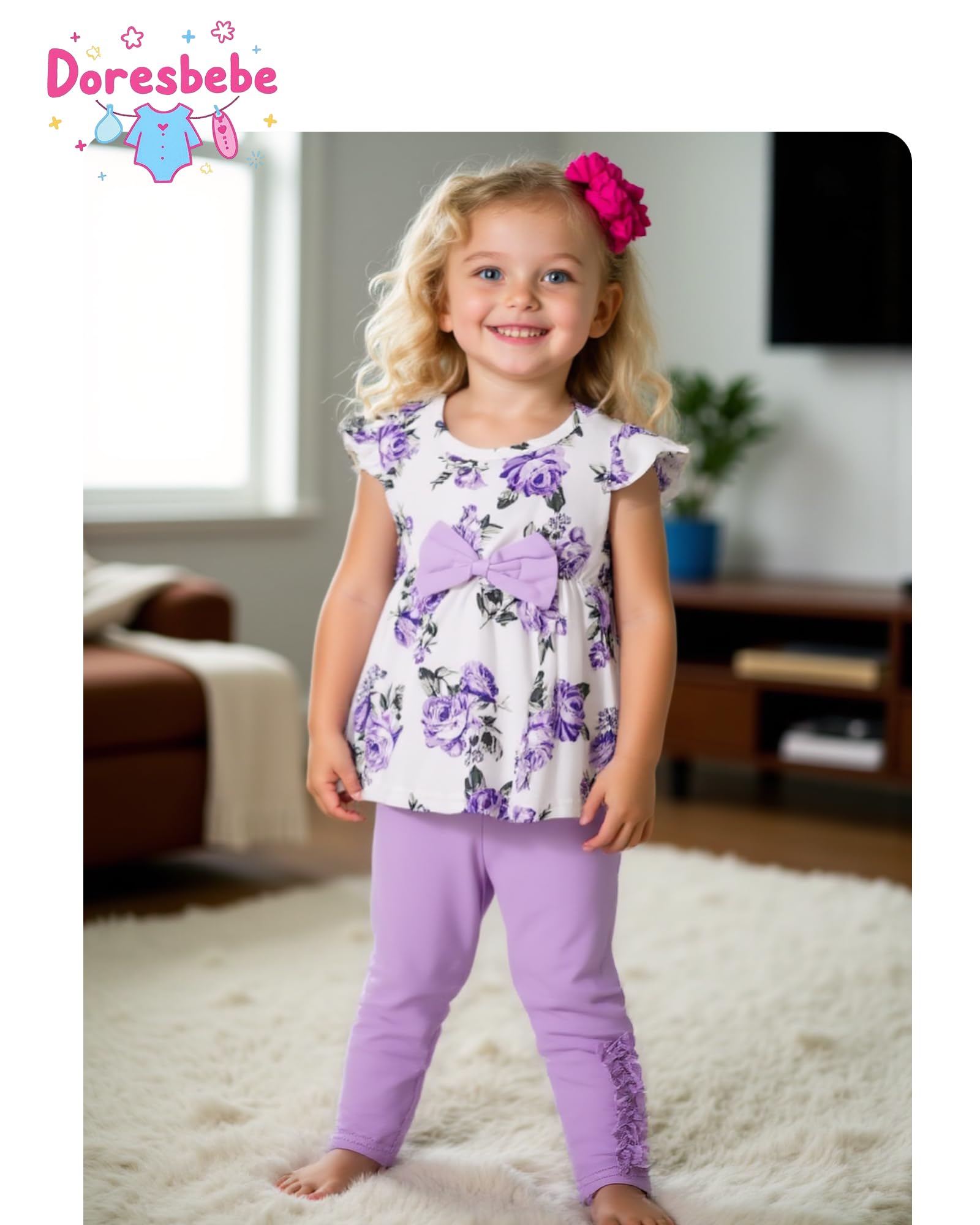 Design: The outfits feature a stylish design with options such as flower, leopard, and stripe ruffle long sleeve shirts, paired with solid color pants. The look is simple yet cute, perfect for any occasion.