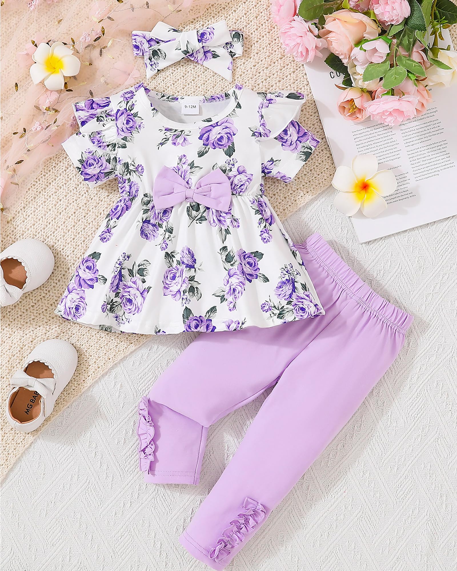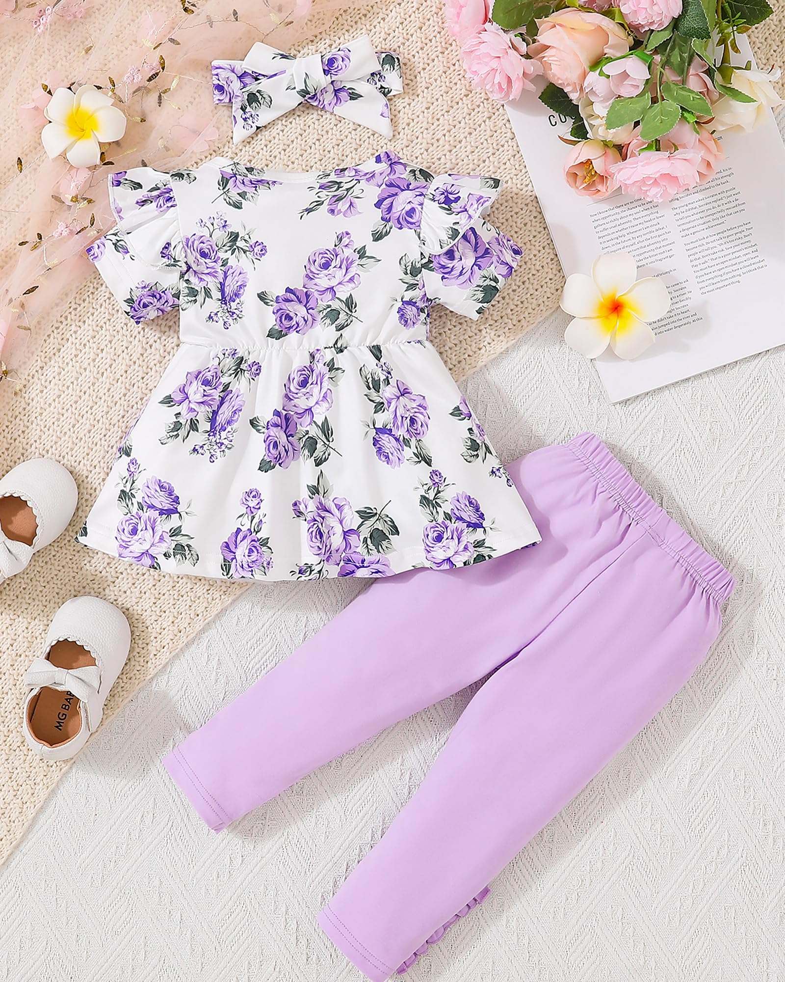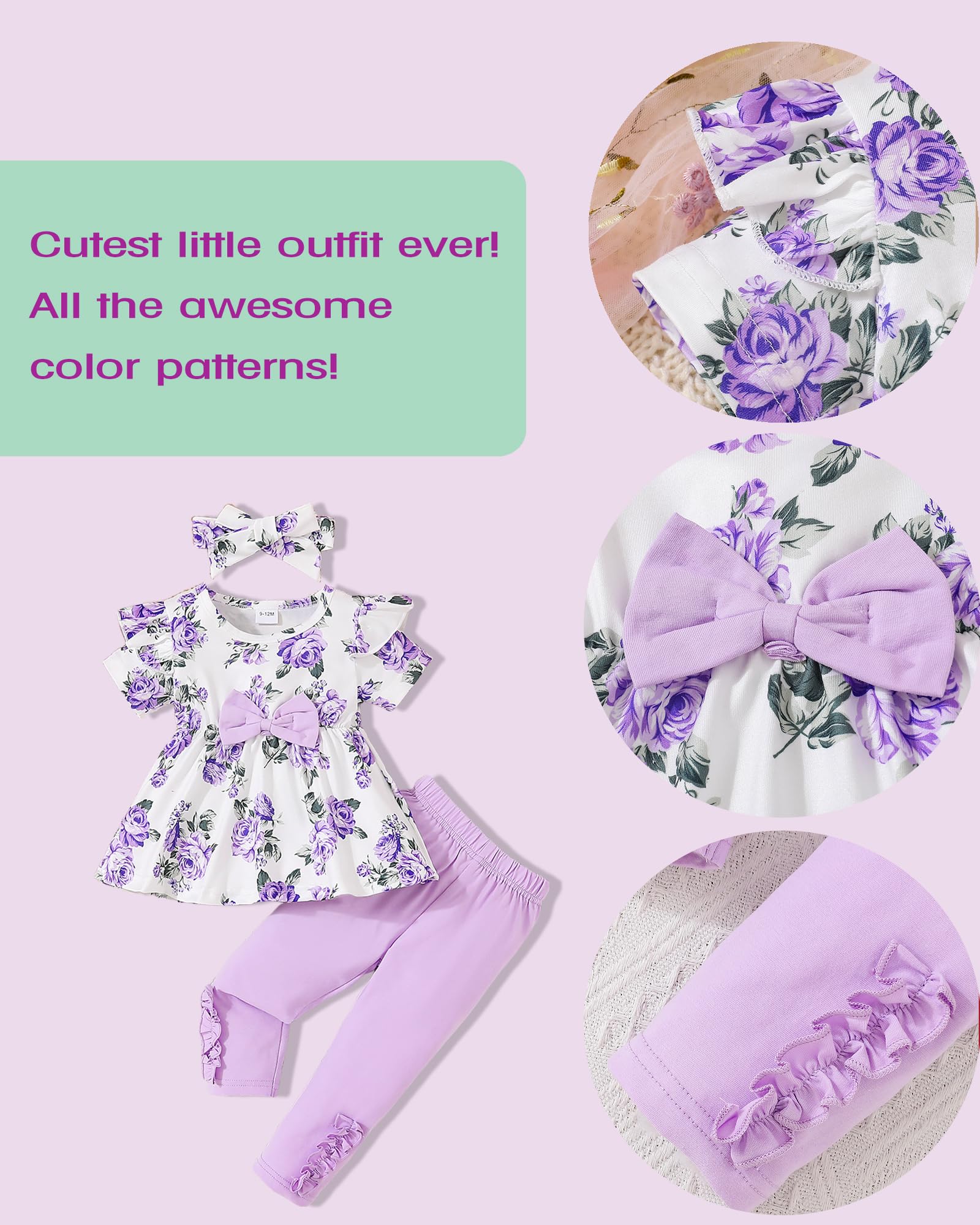 2 Pieces Girl Outfits: Each set includes 1 short sleeve shirt and 1 pair of cotton pants, making it easy to create a coordinated and stylish look for your baby girl.