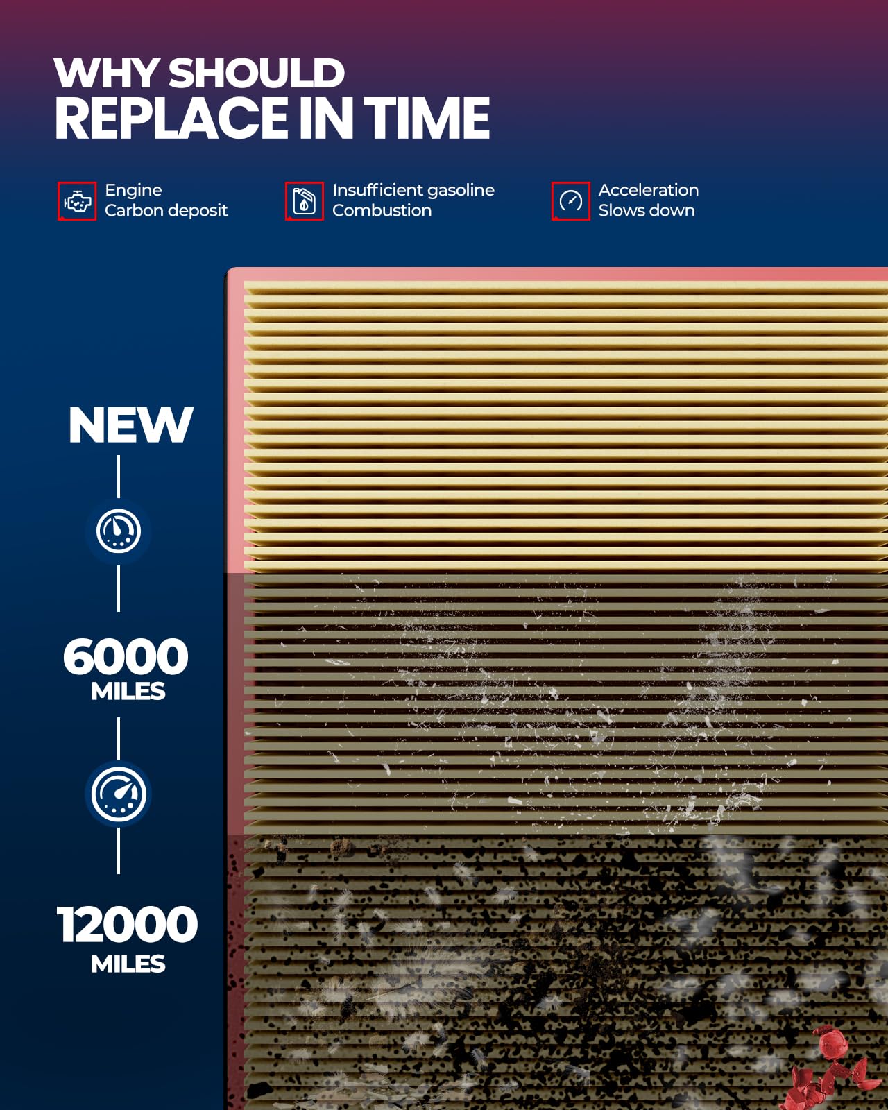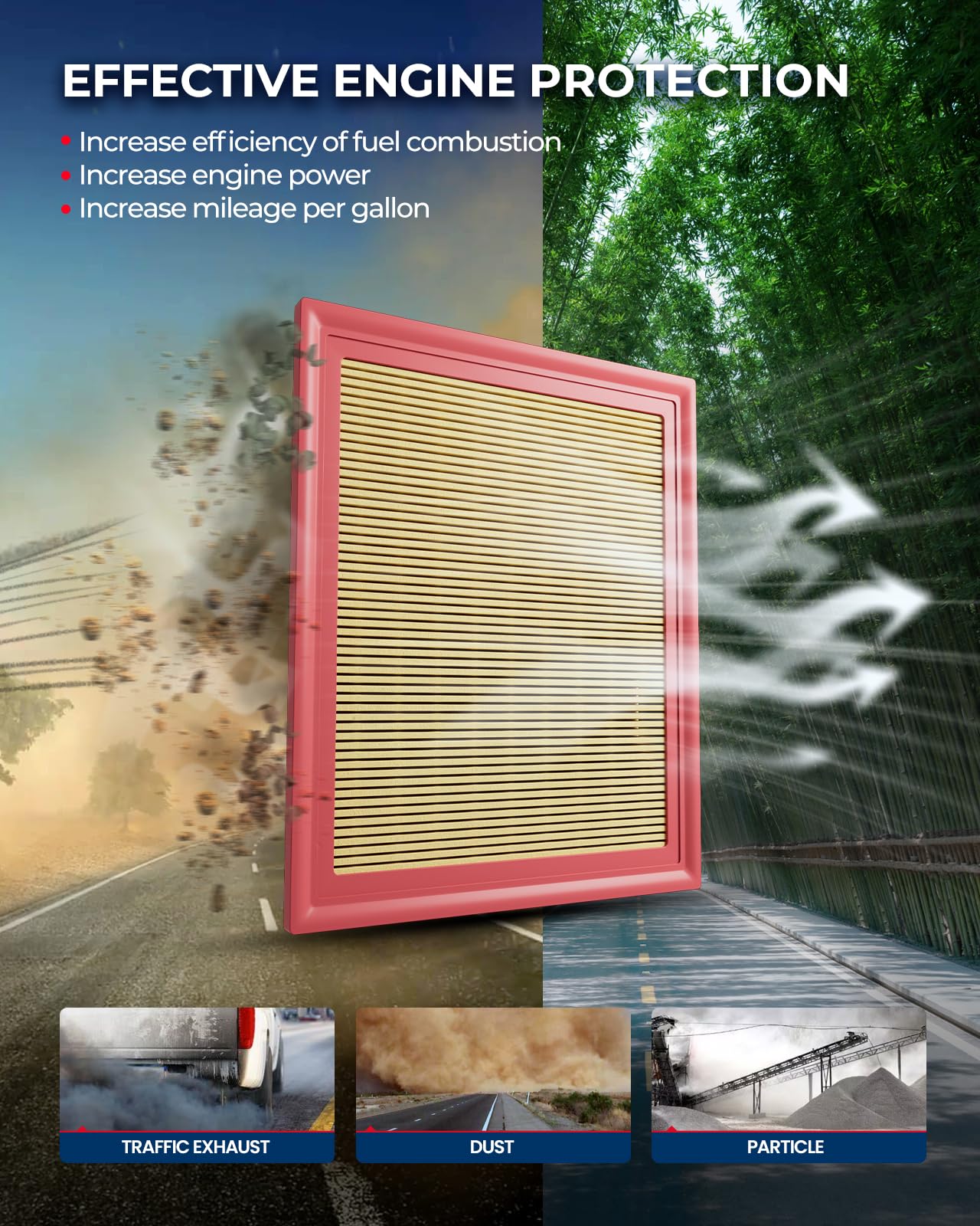 Excellent Filtration Medium: Using High-performance cellulose filter media,captures various debris without hampering airflow. The air entering the engine cylinder is finely filtered to prevent dust and debris, ensuring a sufficient amount of clean air