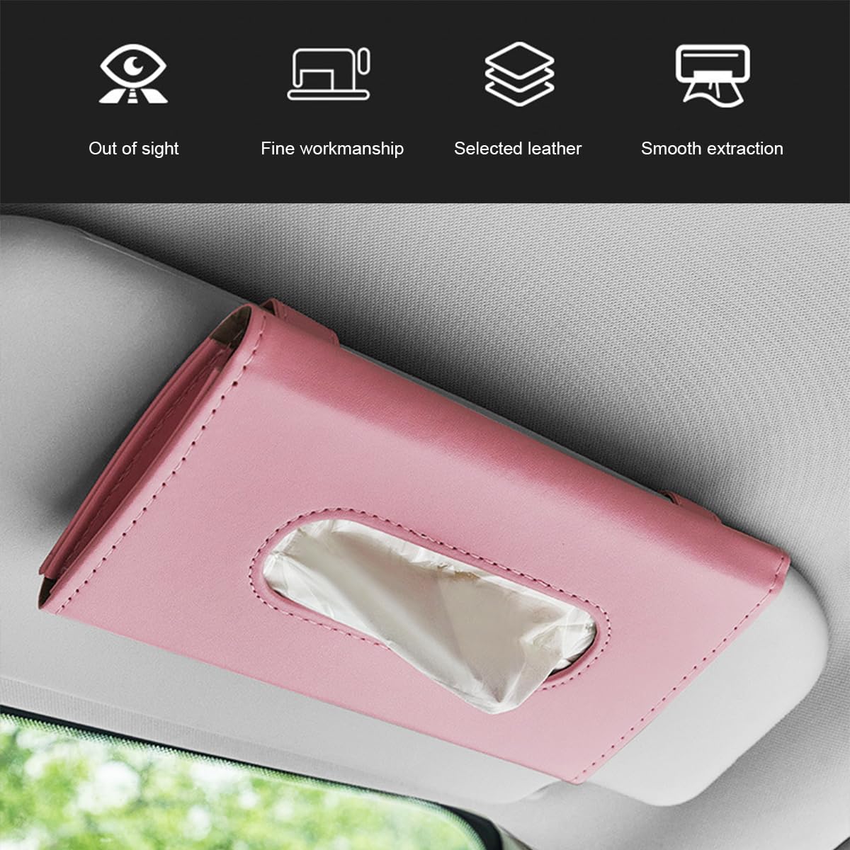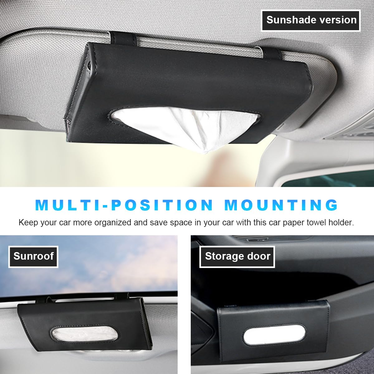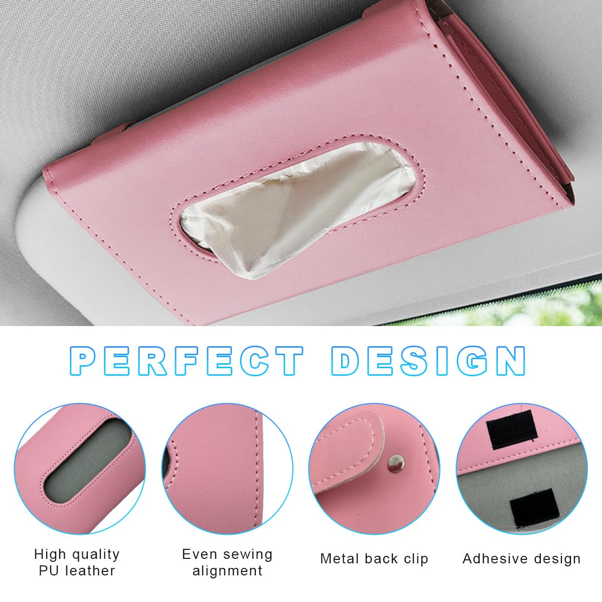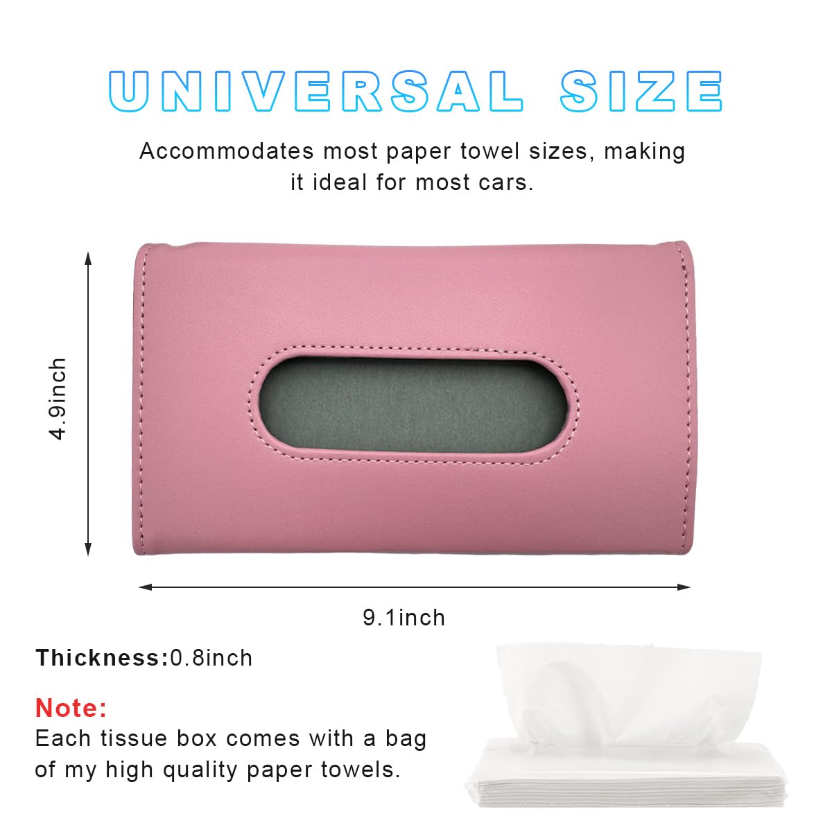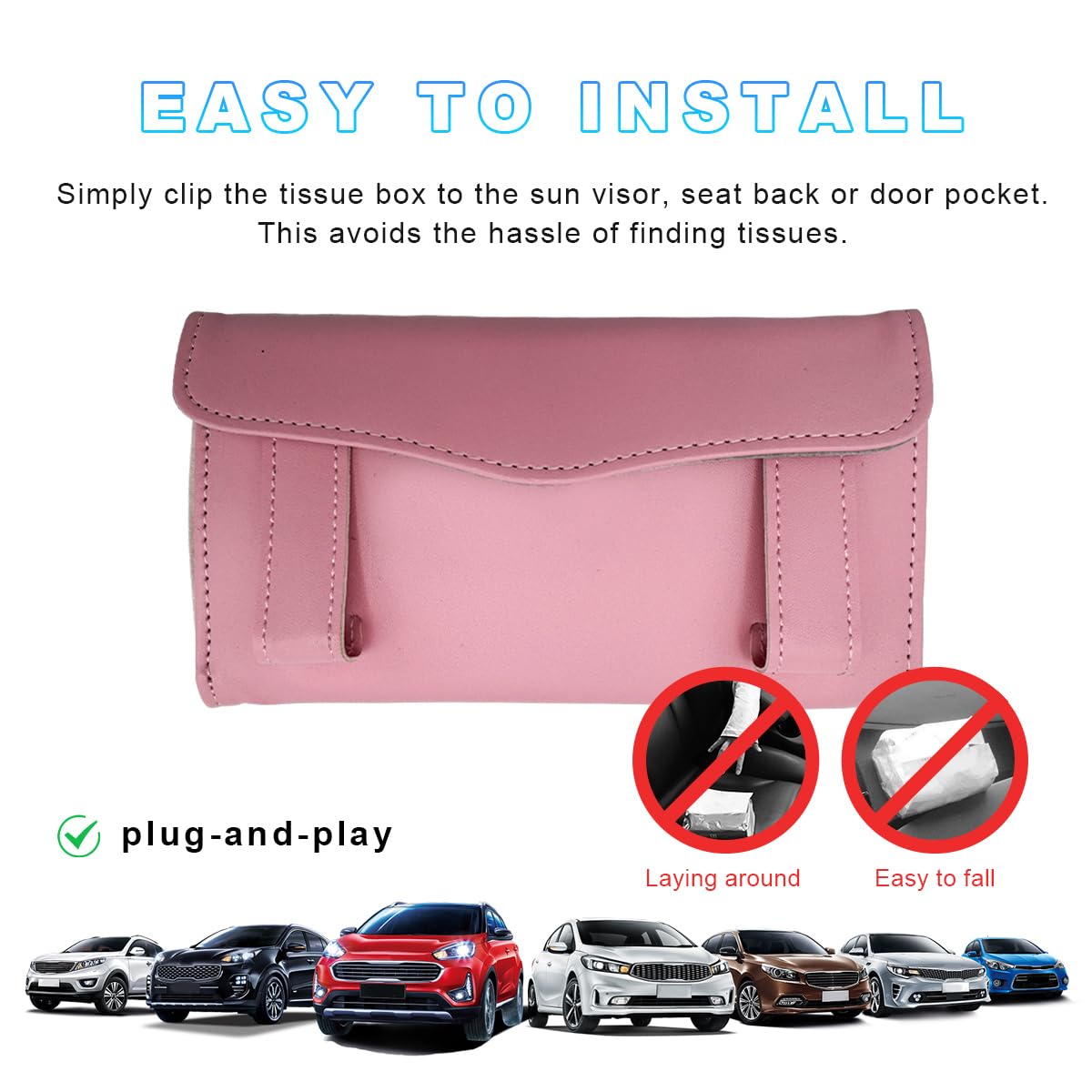 【Wide Application】: The car tissue holder fits universally for various vehicles, whether it's a car, SUV or truck. It can be used on the car visor, car door, center console, dashboard, sunroof or backbeat pocket. You can also use it at home or in the office. In addition, a pack of tissues will be included.