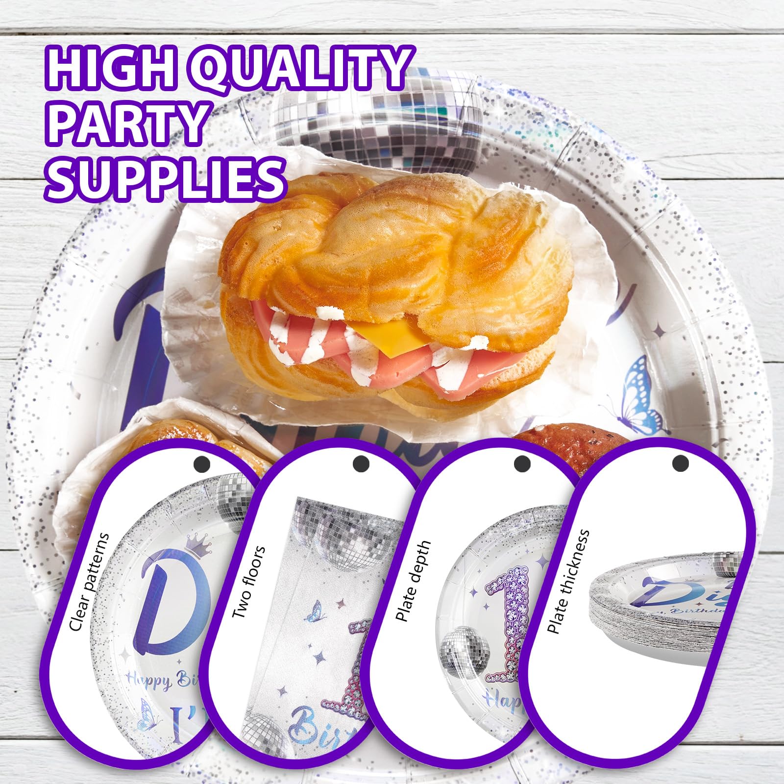 Easy To Clean: If you are tired of cleaning up your plates after the party, then choose us this 10th birthday tableware set, you can save time cleaning up, throw away the disposable tableware set after use and enjoy more time with friends and family! Create a big surprise and lots of fun for the disco theme party supplies