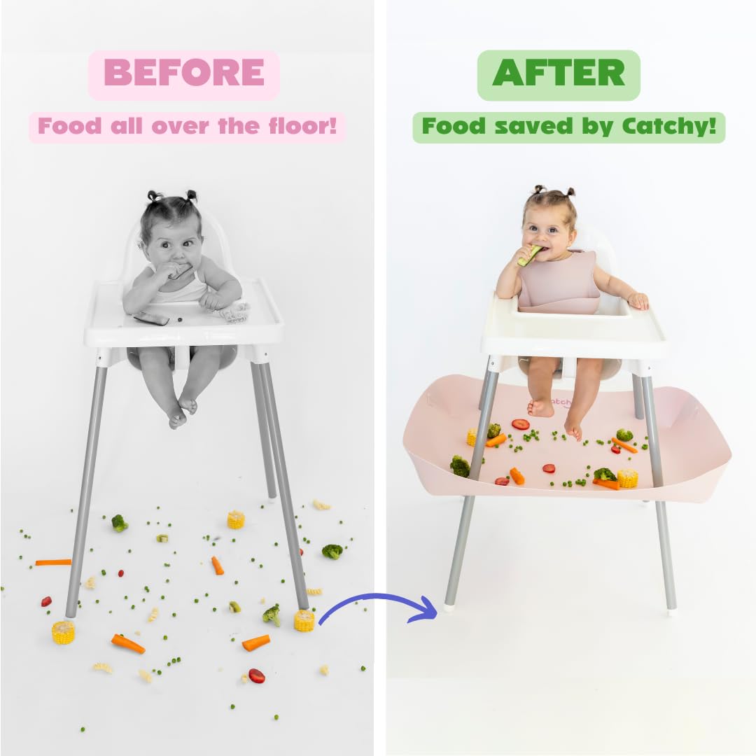 SAVES YOUR FLOOR & CONTAINS MESS: Catches food dropped or thrown by baby, say goodbye to ruined carpets and stained floorboards.