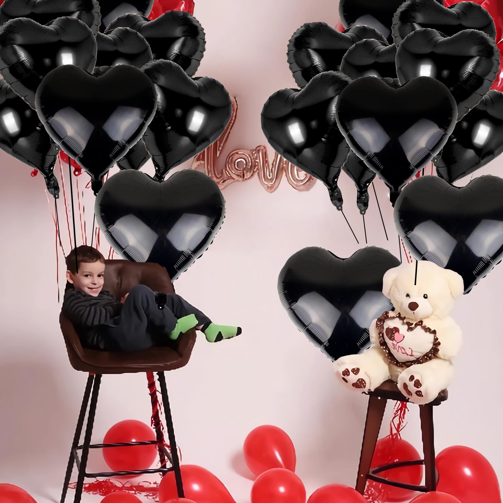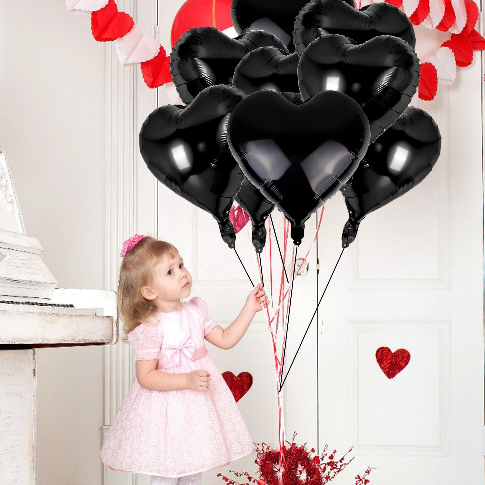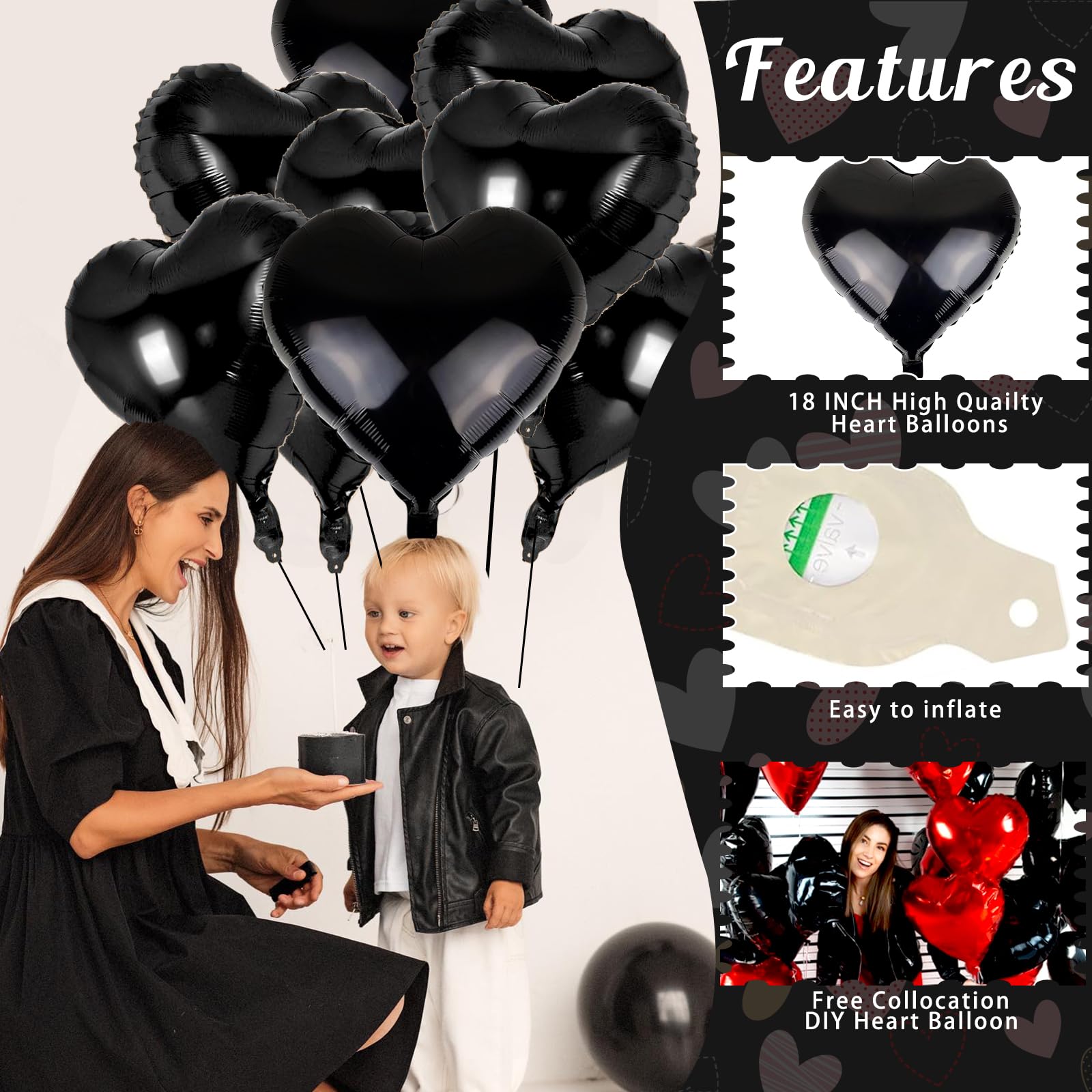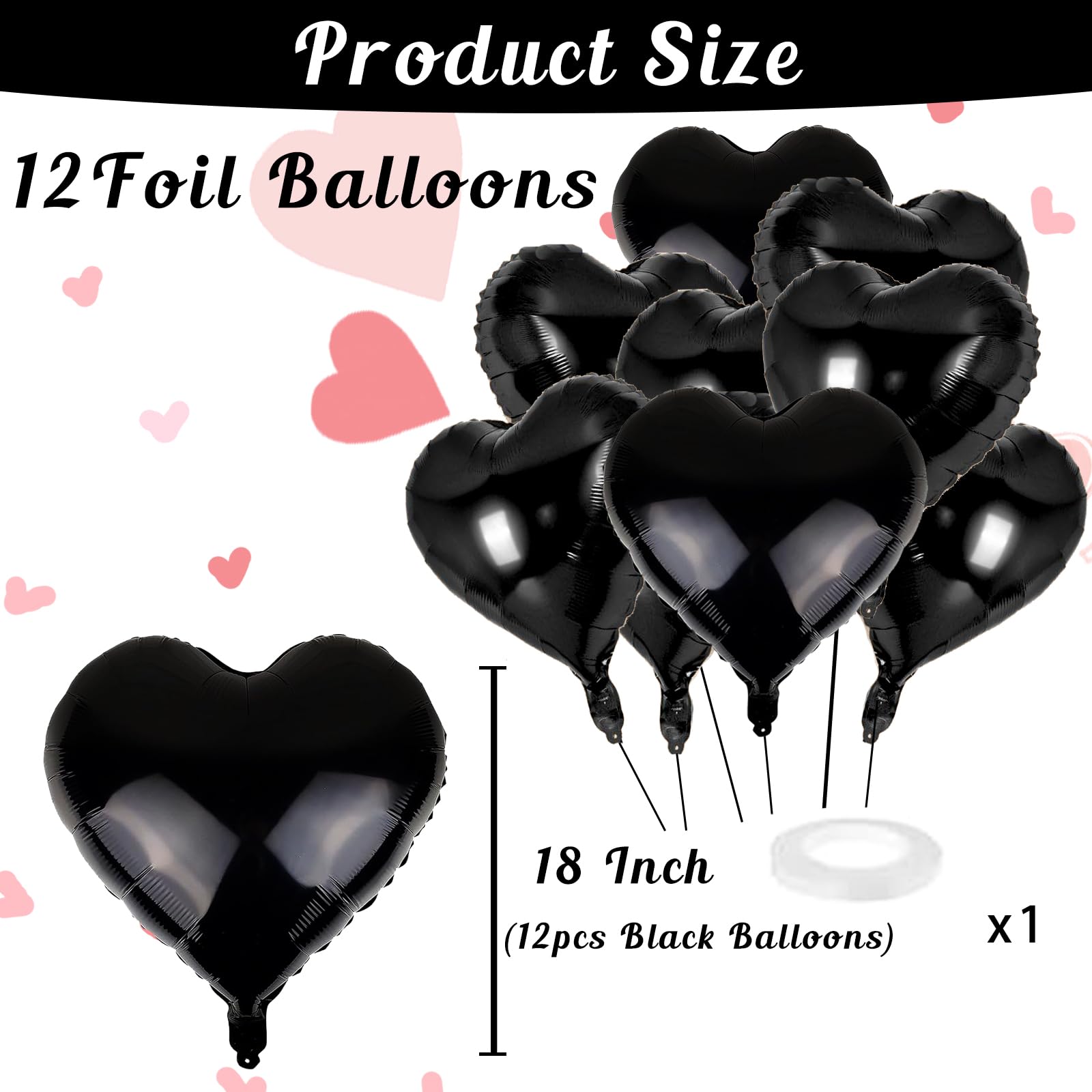 12 Black Heart Balloons: The package includes 12 x 18 inch black heart balloons with 1 ribbon. black foil heart-shaped balloons add a touch of fun and surprise to any party or holiday celebration. Their size is 18 inches, which is the perfect complement to your decoration needs, leaving unforgettable memories for your guests!