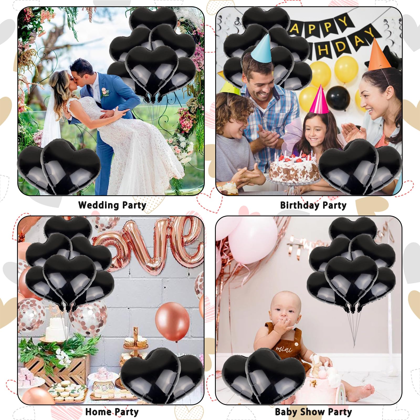 Multi functional decoration: Our black heart-shaped Valentine's Day balloons are perfect for various celebration events, including birthday parties for boys and girls, baby showers, Valentine's Day decorations, wedding parties, bridal showers, princess parties, anniversaries, and more. They are perfect for balloon bouquets, home and table decorations, wedding aisle decorations, photo backgrounds, party supplies, and other activities.