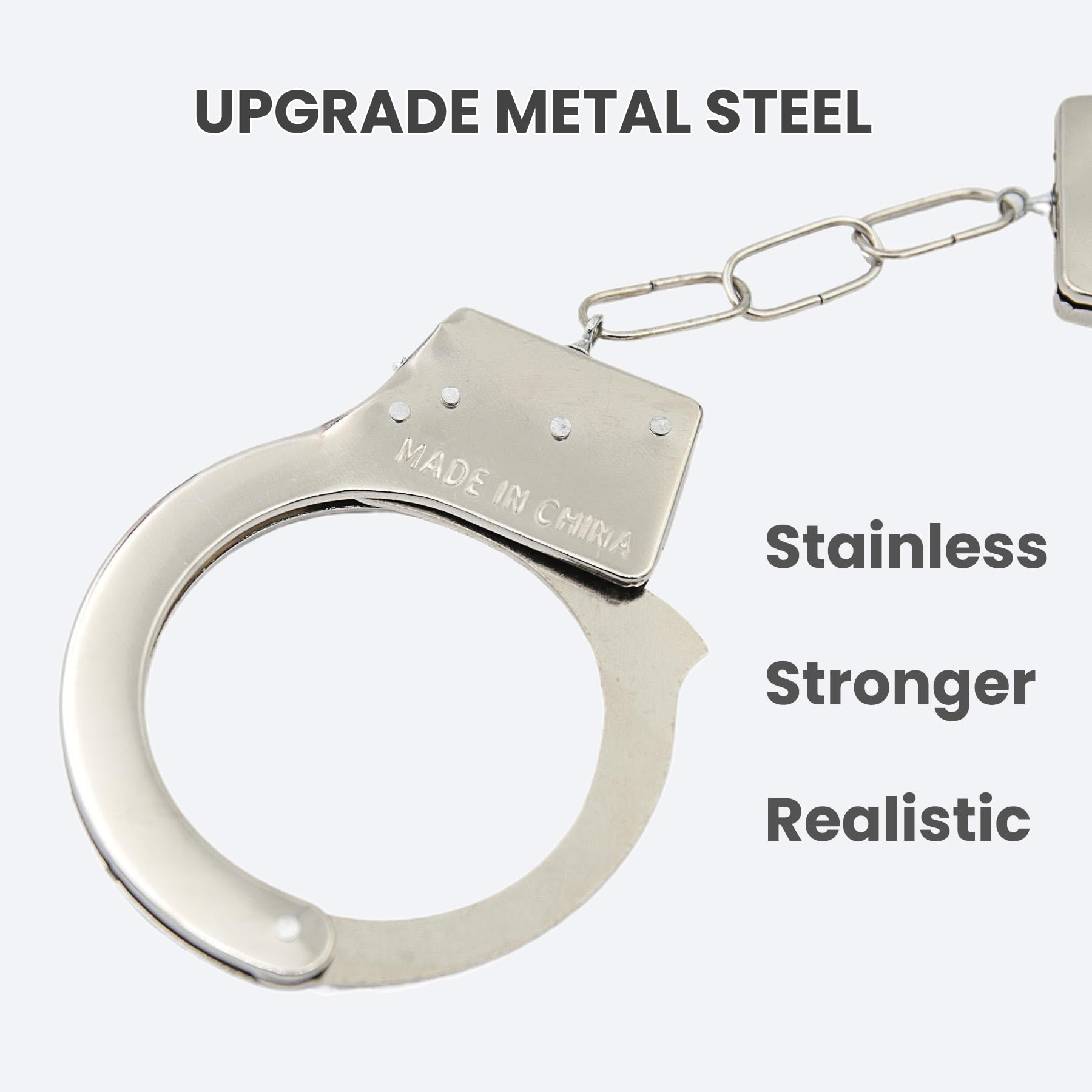 Handcuffs are made of real metal, durable & lightweight. Perfect for police officer role play, cowboy sheriff game.