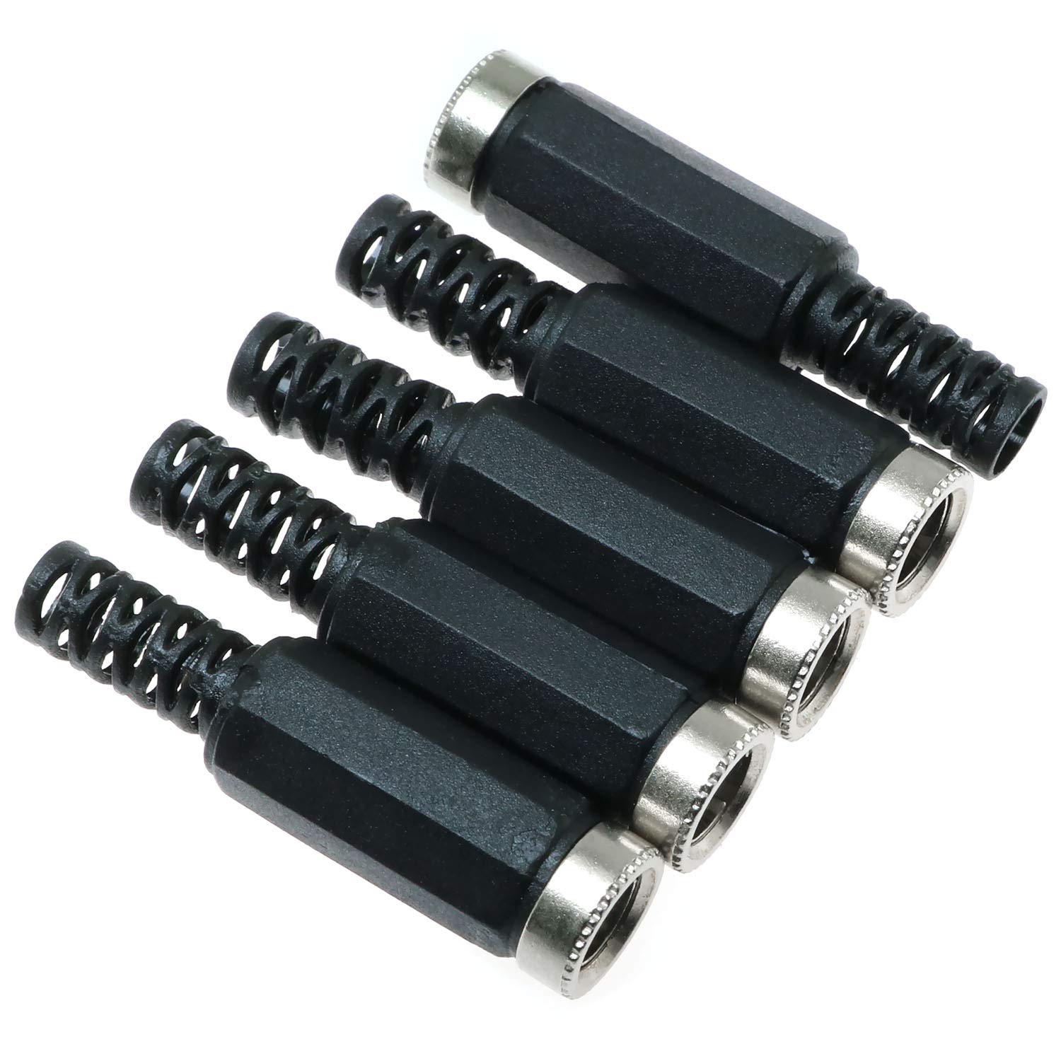 Product description Specifications Product Name: DC Socket Material: Plastic and Metal Current: 1-3A Voltage:9 - 48V DC Inside diameter: 2.5mm/0.10Inch Outside diameter: 5.5mm/0.22 Inch Connection technology: soldering Color:Black Package Content: 5PCS Features: This Conwork DC Plug Connector is attached to a power cable using solder terminals, perfect for making a cable to a desired length or replacing a broken connector.