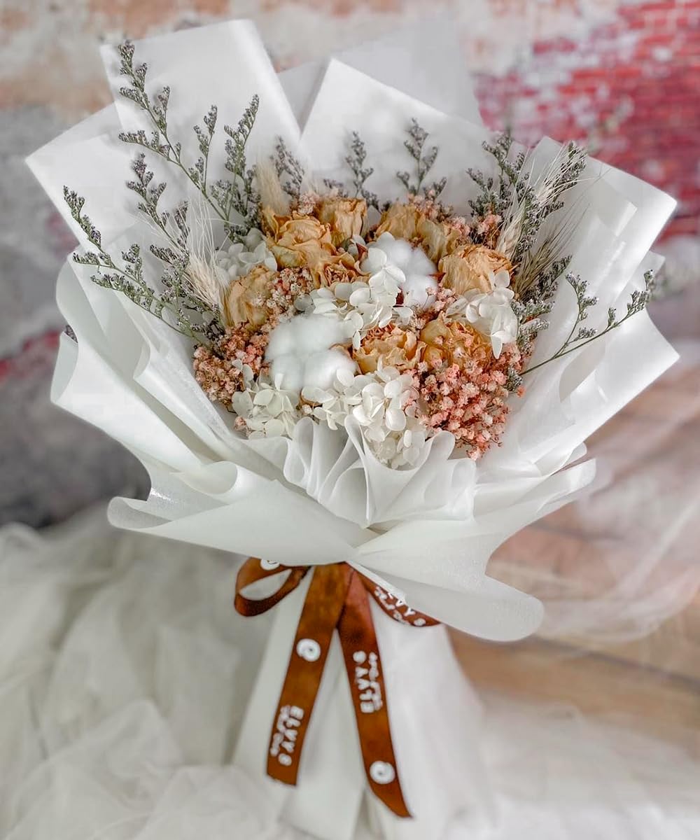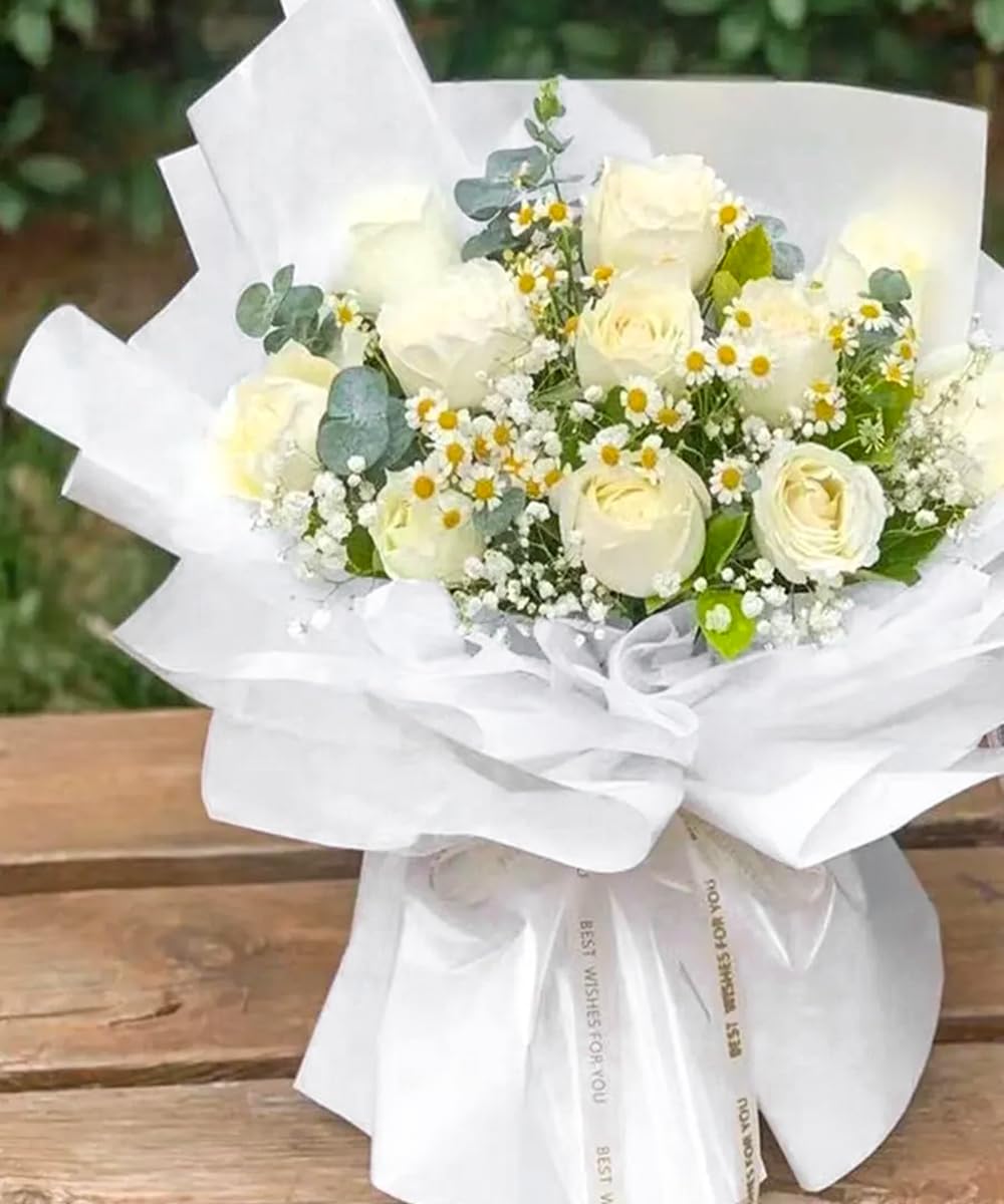 Elegant Design: Classic pure white design, new and charming color make the whole bunch of flowers full of fashion design, smooth and comfortable to touch, makes wrapping paper more noble.
