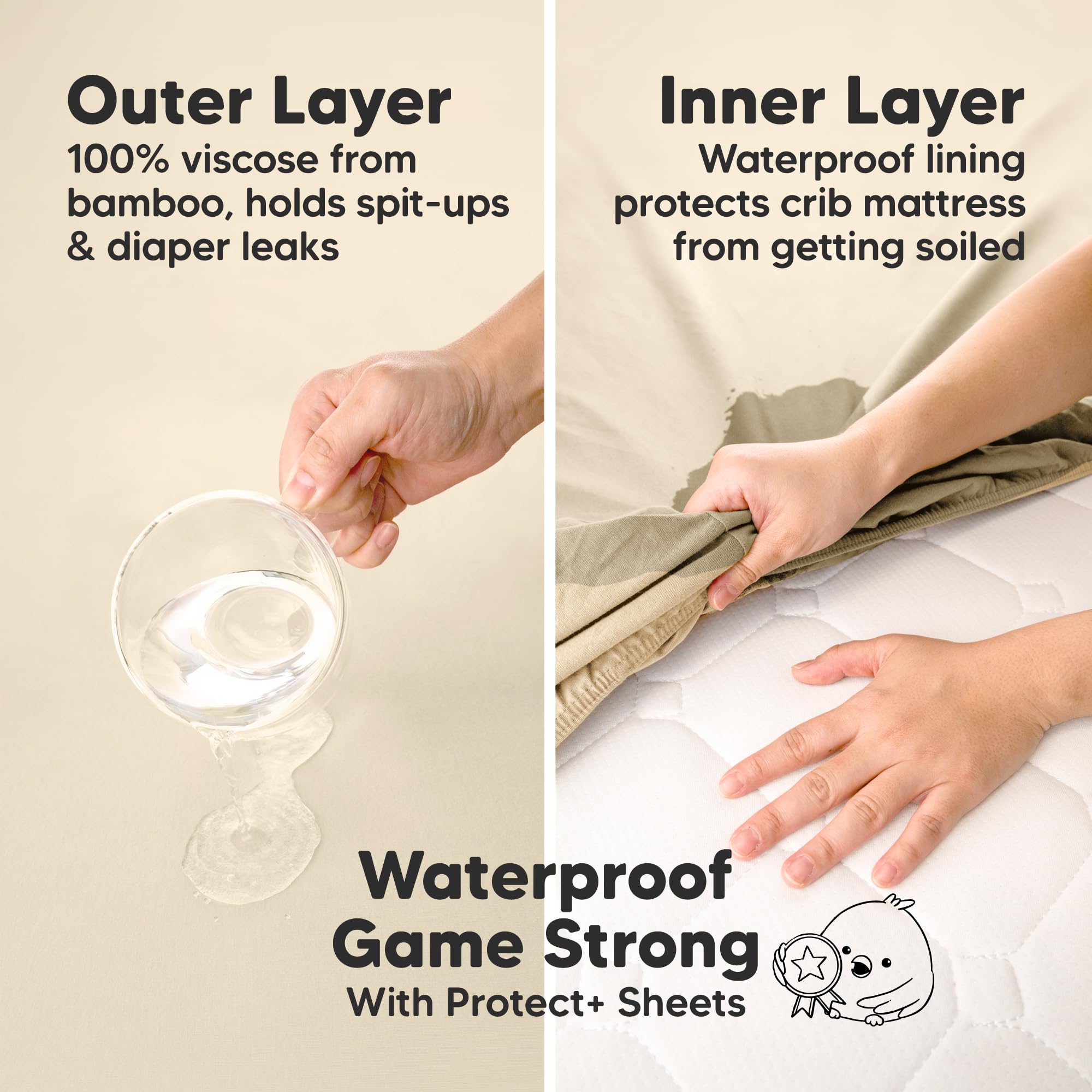 Protect+ Waterproof - Featuring a waterproof layer, the Isla Protect+ Mini Crib Mattress Sheet safeguard your playard mattress against diaper leaks, spit-ups, and more. This means no need for an extra layer and less laundry for you.