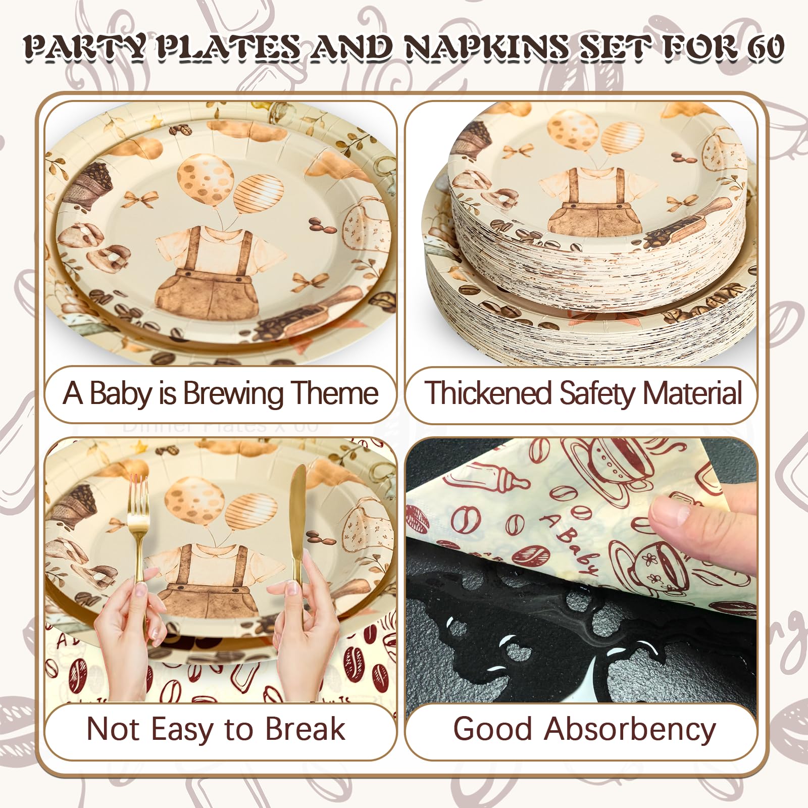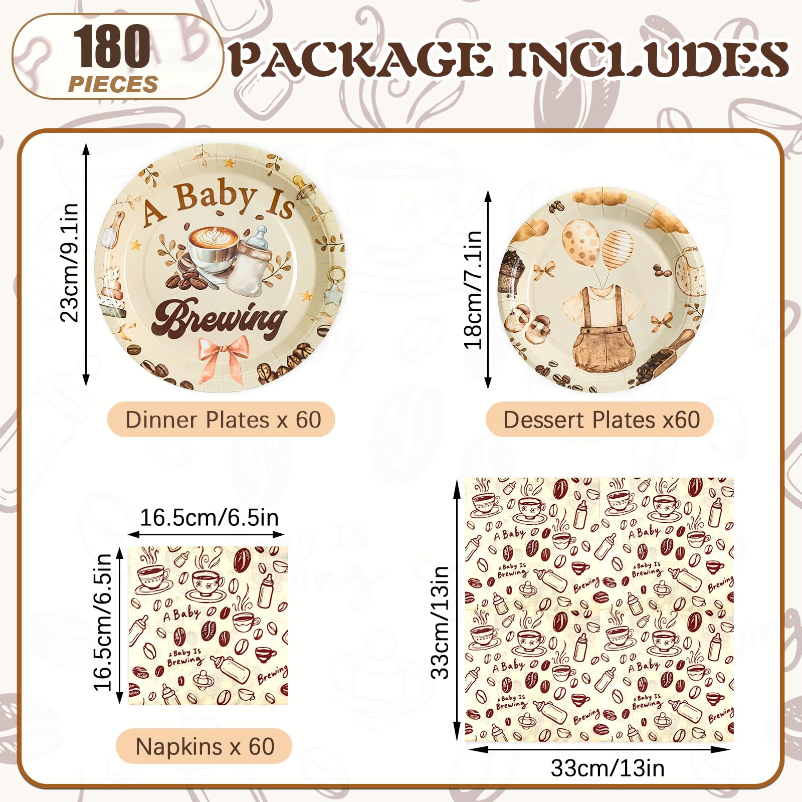 180 Pcs Plates and Napkins Set: This set includes 60 dinner plates (9.1"), 60 dessert plates (7.1"), and 60 napkins, perfect for serving up to 60 guests. From casual dinners to large celebrations, this all-in-one solution ensures a stylish, hassle-free dining experience every time