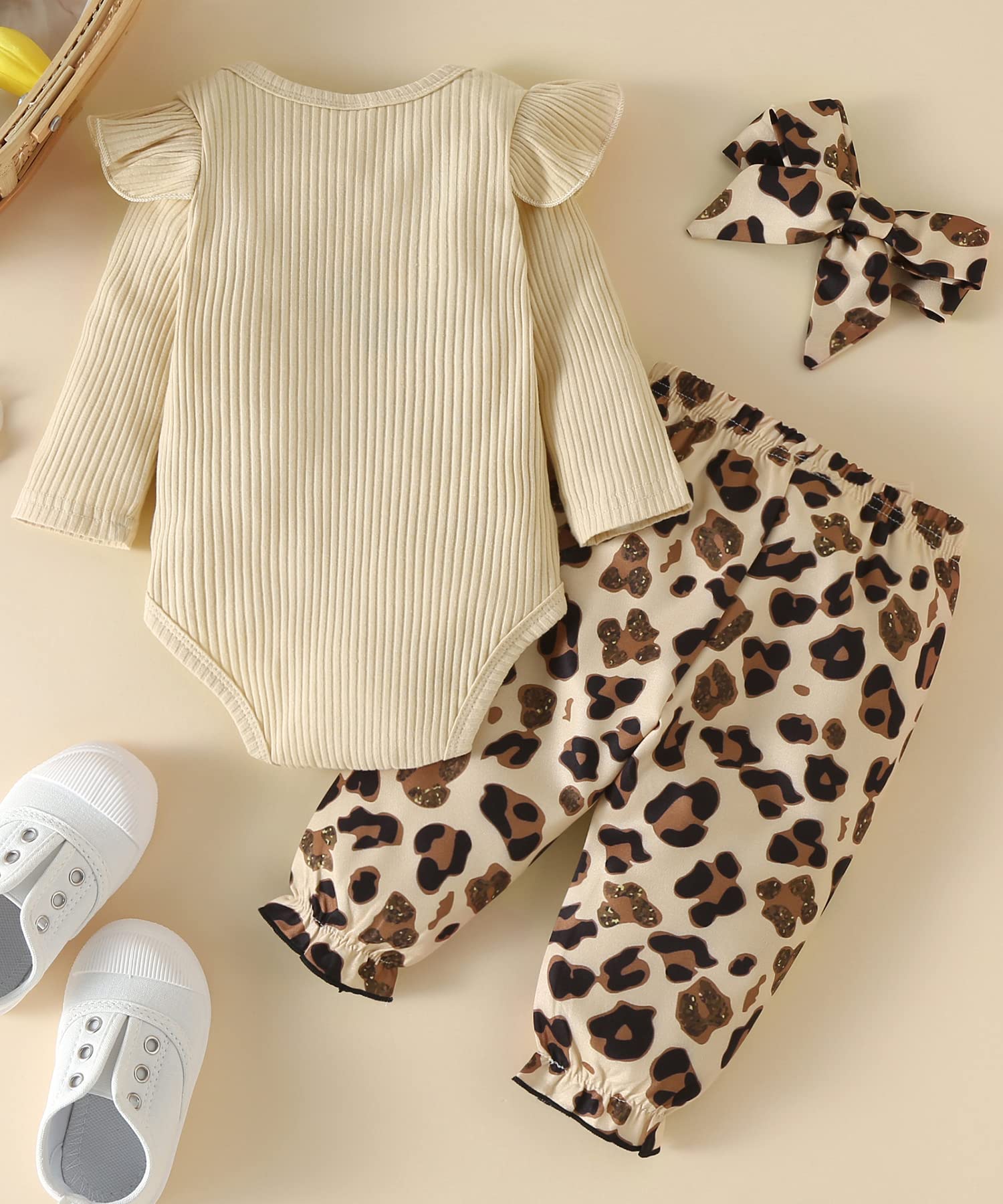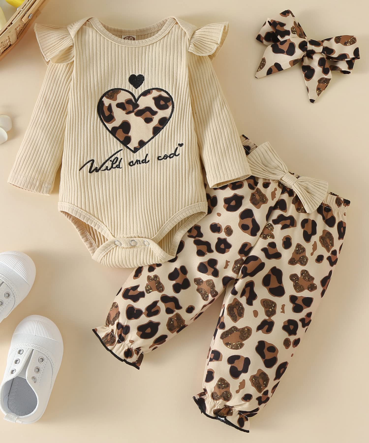 This baby girl outfit includes a onesie,pants,and a matching headband,providing a complete and stylish look for any occasion.