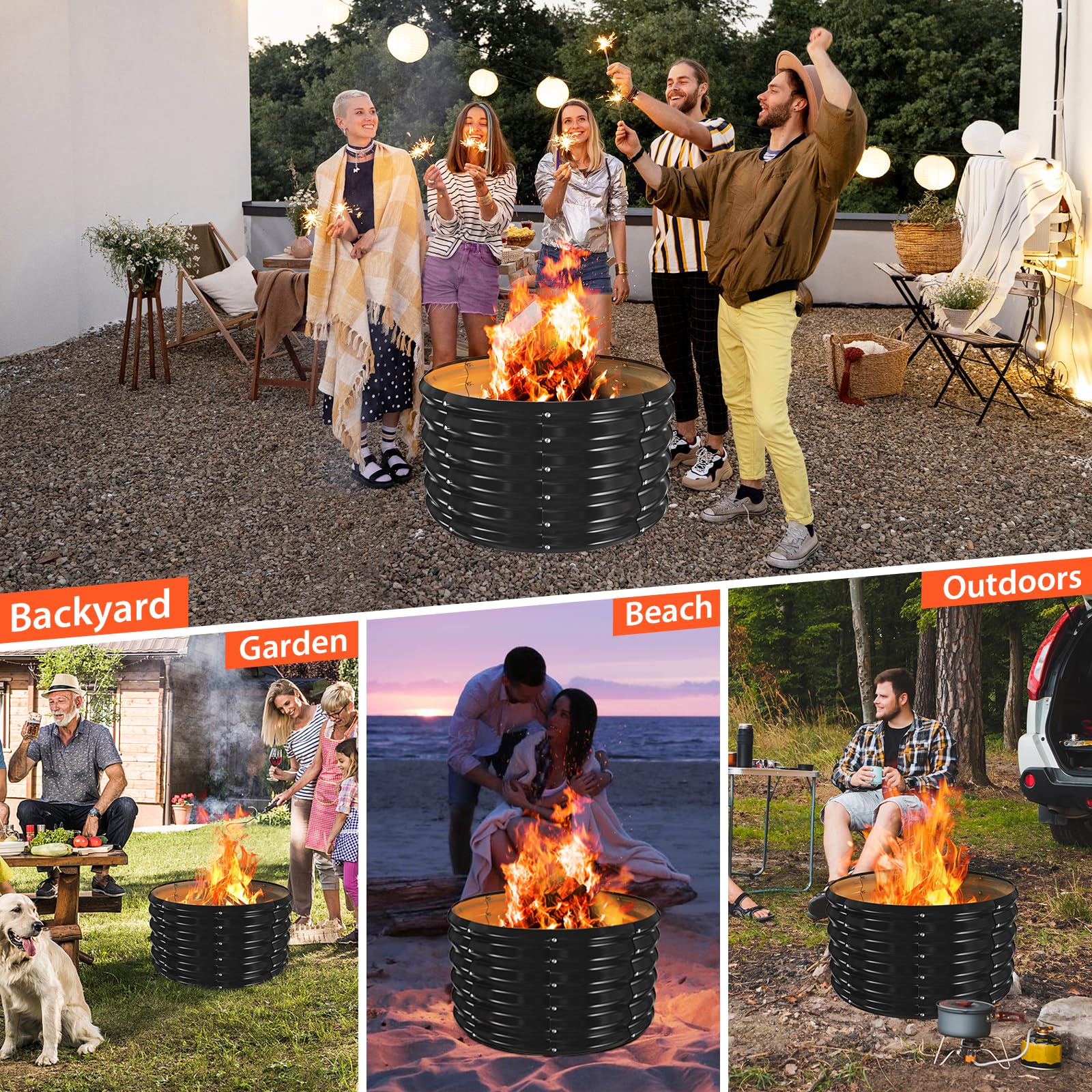 Durable Construction: The Black Round Galvanized Fire Pit Ring is made from 0.8MM thick high-quality galvanized steel and painted also,ensuring long-lasting durability and resistance to rust or corrosion